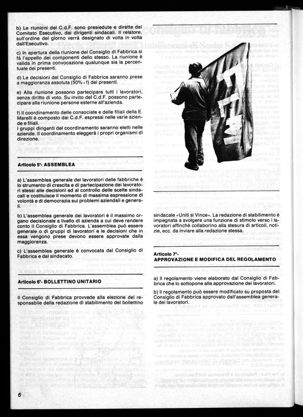 sindacale «Uniti si Vince». La redazione di stabilimento è impegnata a svolgere una funzione di stimolo verso i lavoratori affinché collaborino alla stesura di articoli, notizie, ecc. da inviare alla redazione stessa.