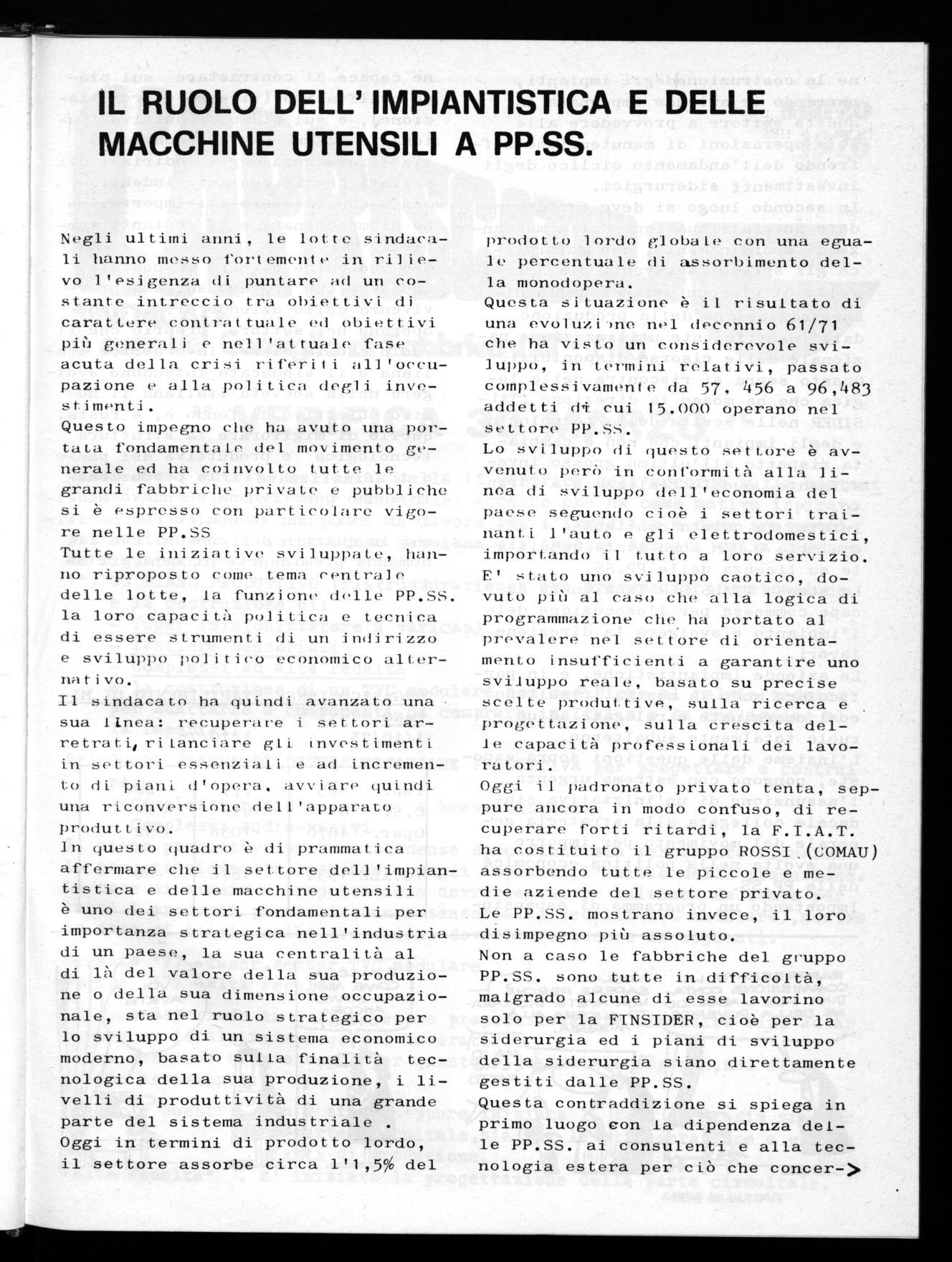 Ciò vuol dire battere le pesanti ipoteche che gravano sulla sopravvivenza delle aziende I.R.I. che operano nel settore, proprio che il ruolo che la classe lavoratrice italiana e il sindacato intendono svolgere nella società italiana il nostro obiettivo di fondo è, e resta, quello di migliorare la struttura tecnologica e produttiva del paese e di finalizzare la produzione in senso positivo ad un nuovo modello di sviluppo economico che modifichi la qualità dei consumi con la domanda preminenete di beni sociali.