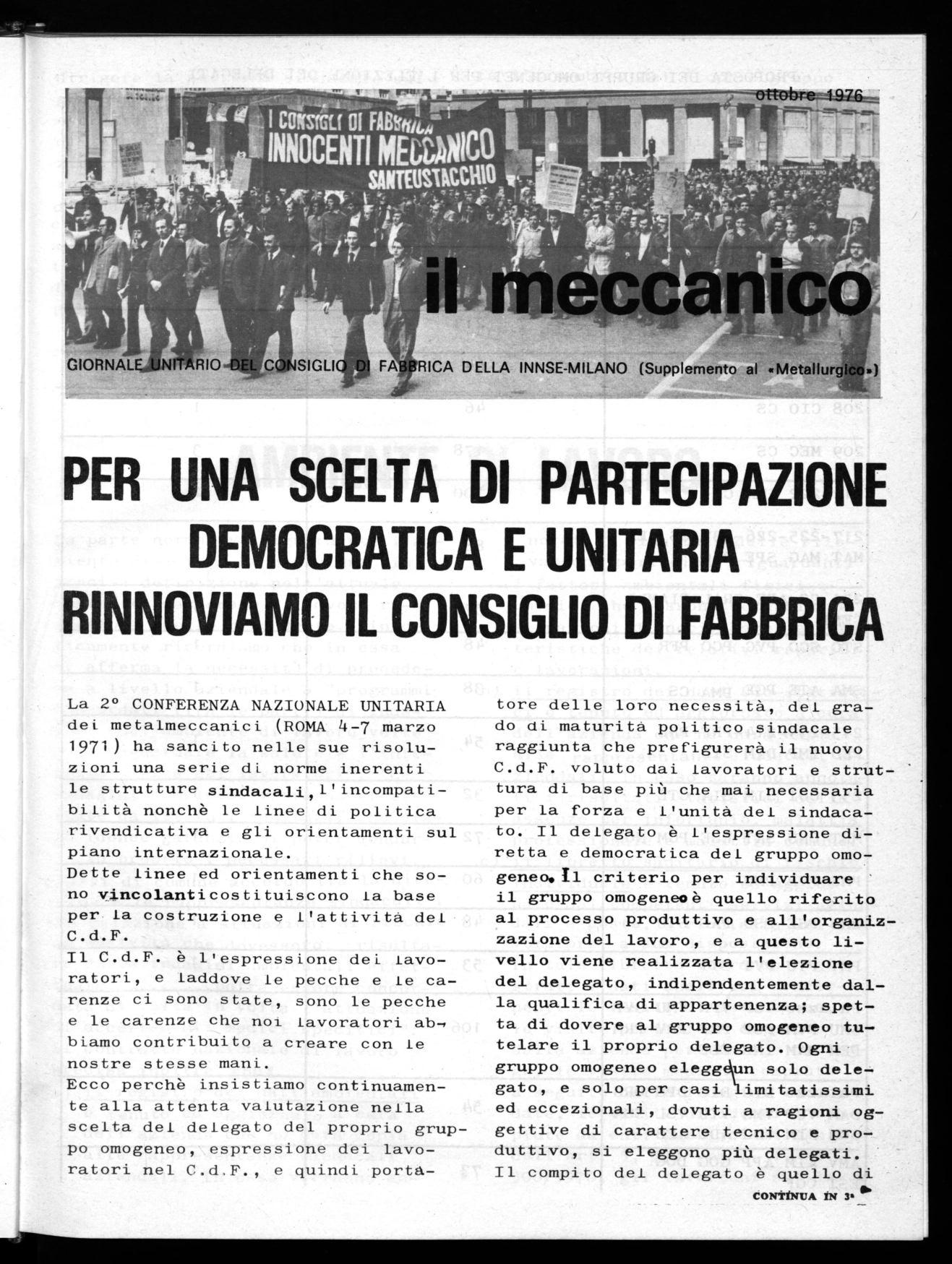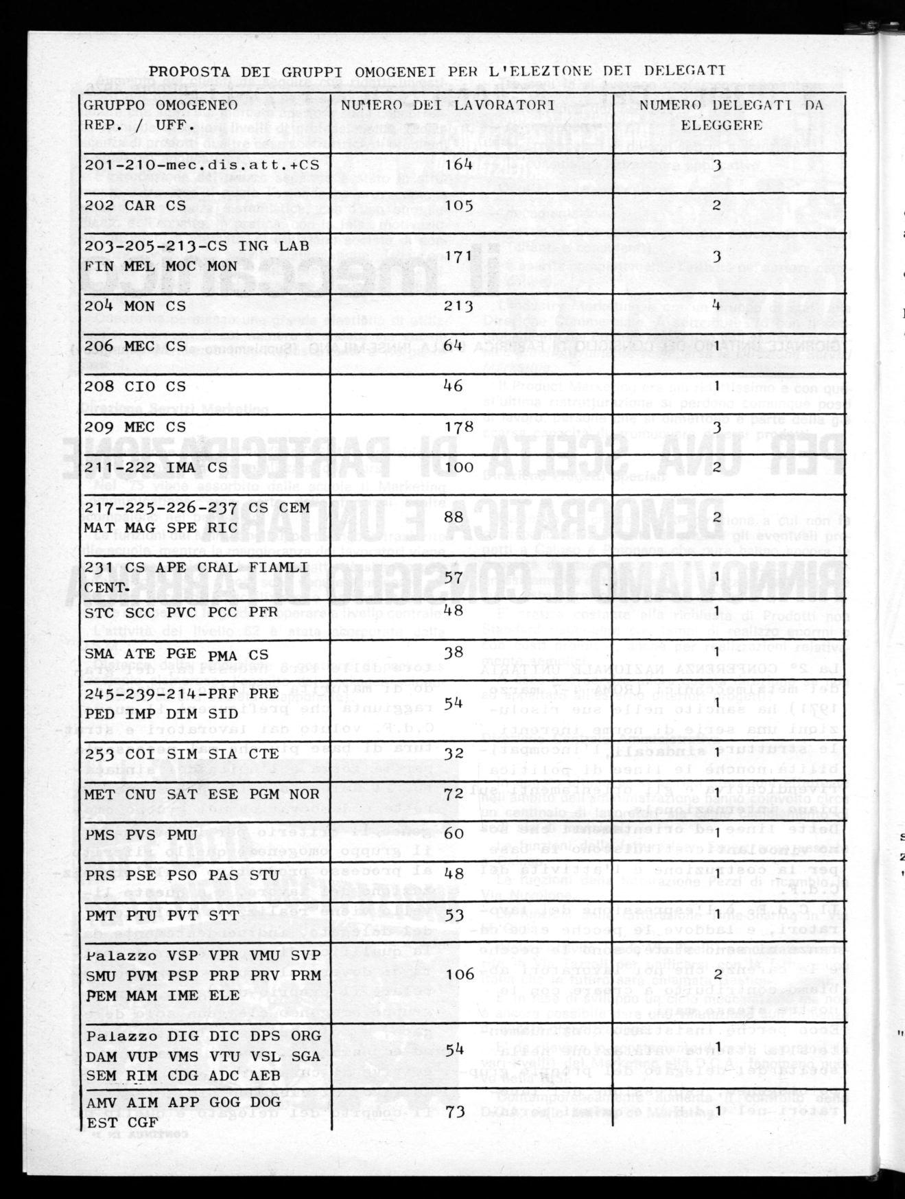 tore delle loro necessità, del grado di maturità politico sindacale raggiunta che prefigurerà il nuovo C.d.F. voluto dai lavoratori e struttura di base più che mai necessaria per la forza e l'unità del sindacato. Il delegato è L'espressione diretta e democratica del gruppo omogeneoe il criterio per individuare il gruppo omogeneoè quello riferito al processo produttivo e all'organizzazione del lavoro, e a questo livello viene realizzata l'elezione del delegato, indipendentemente dalla qualifica di appartenenza; spetta di dovere al gruppo omogeneo tutelare il proprio delegato. Ogni s gruppo omogeneo elegg \ un solo delegato, e solo per casi imitatissimi ed eccezionali, dovuti a ragioni oggettive di carattere tecnico e produttivo, si eleggono più delegati. Il compito del delegato è quello di ch. CONTINUA IN 3.