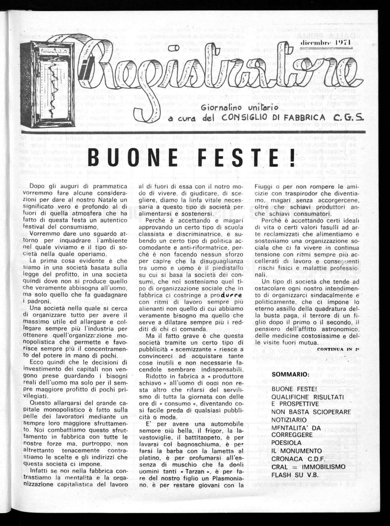 Giornalino unitario a cura de I CONSIGLIO DI FABBRICA C.G. S.