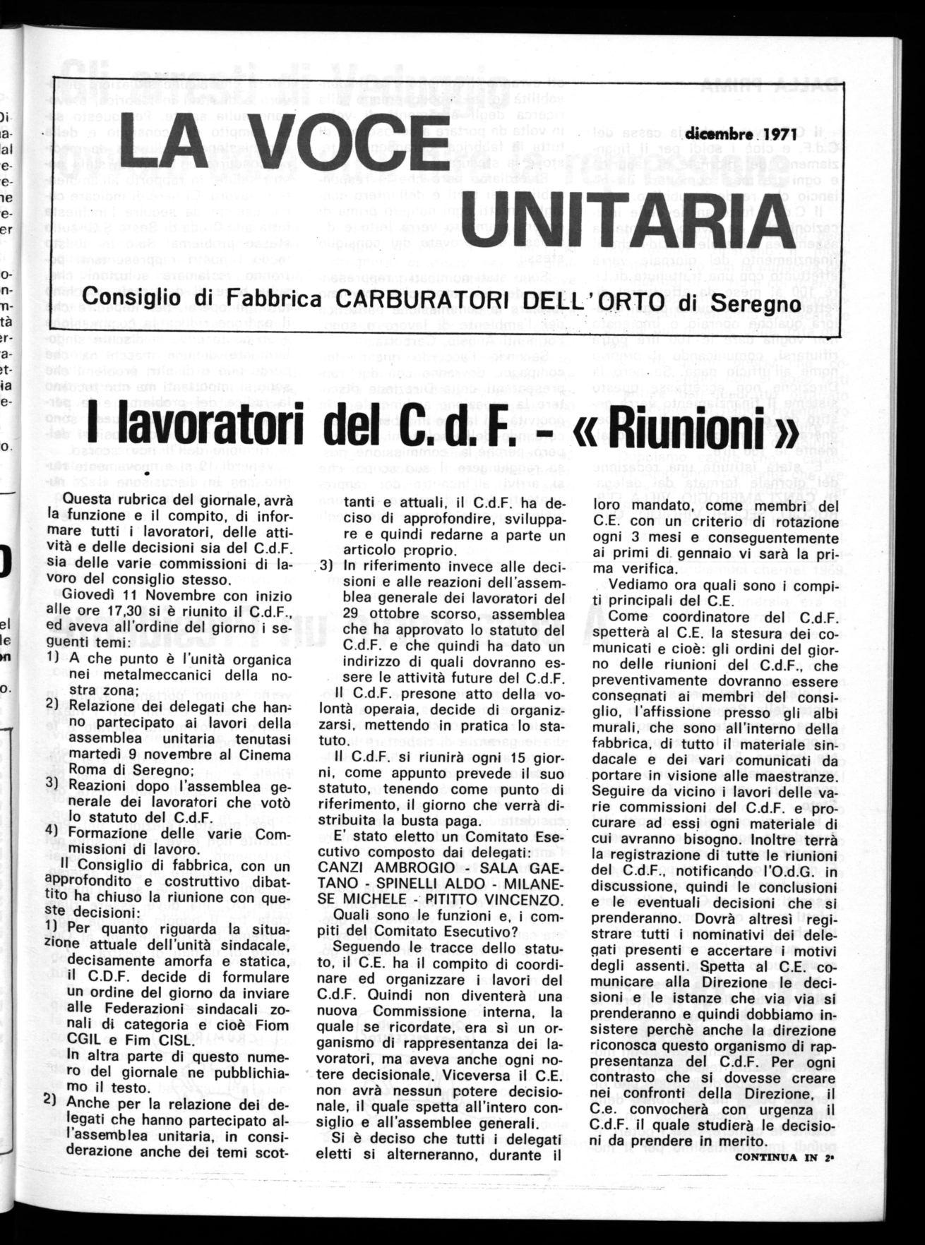 E' stata istituita una redazione del giornale formata dai delegati: CANZI AMBROGIO, VILLA FERRUCCIO, SECCHI VIRGILIO. Que-