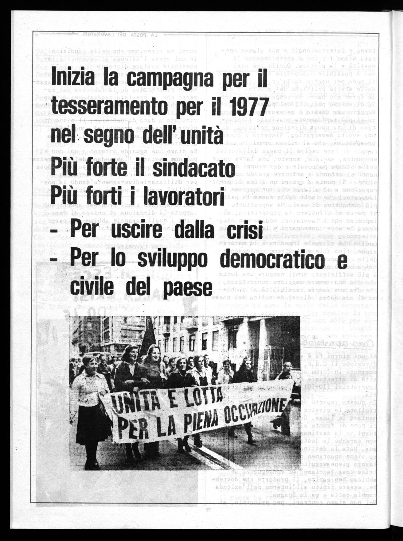 Inizia la campagna per il tesseramento per il 1977 nel segno dell' unità