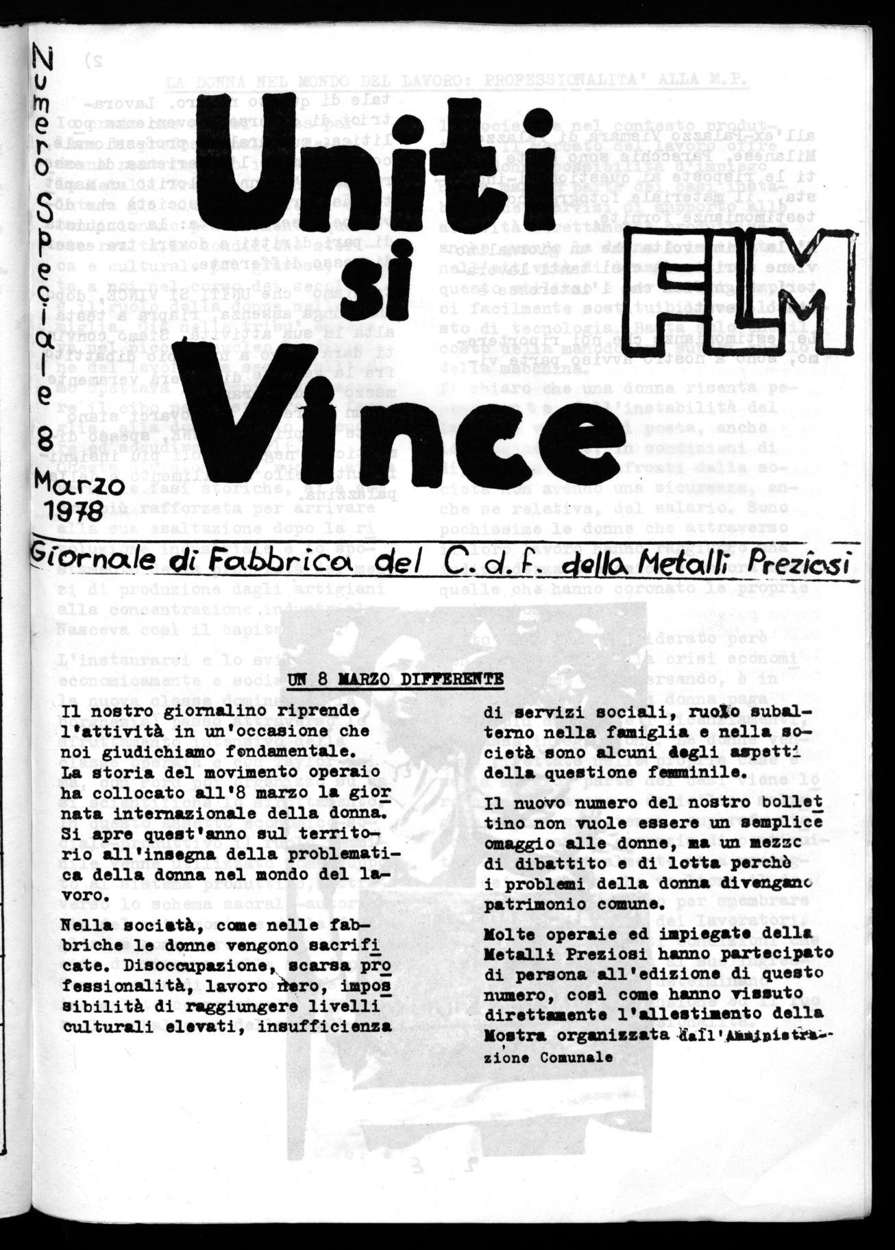 Il nostro giornalino riprende l'attività in un'occasione che noi giudichiamo fondamentale. La storia del movimento operaio ha collocato all'8 marzo la gior nata internazionale della donna. Si apre quest'anno sul territorio all'insegna della problematica della donna nel mondo del lavoro.