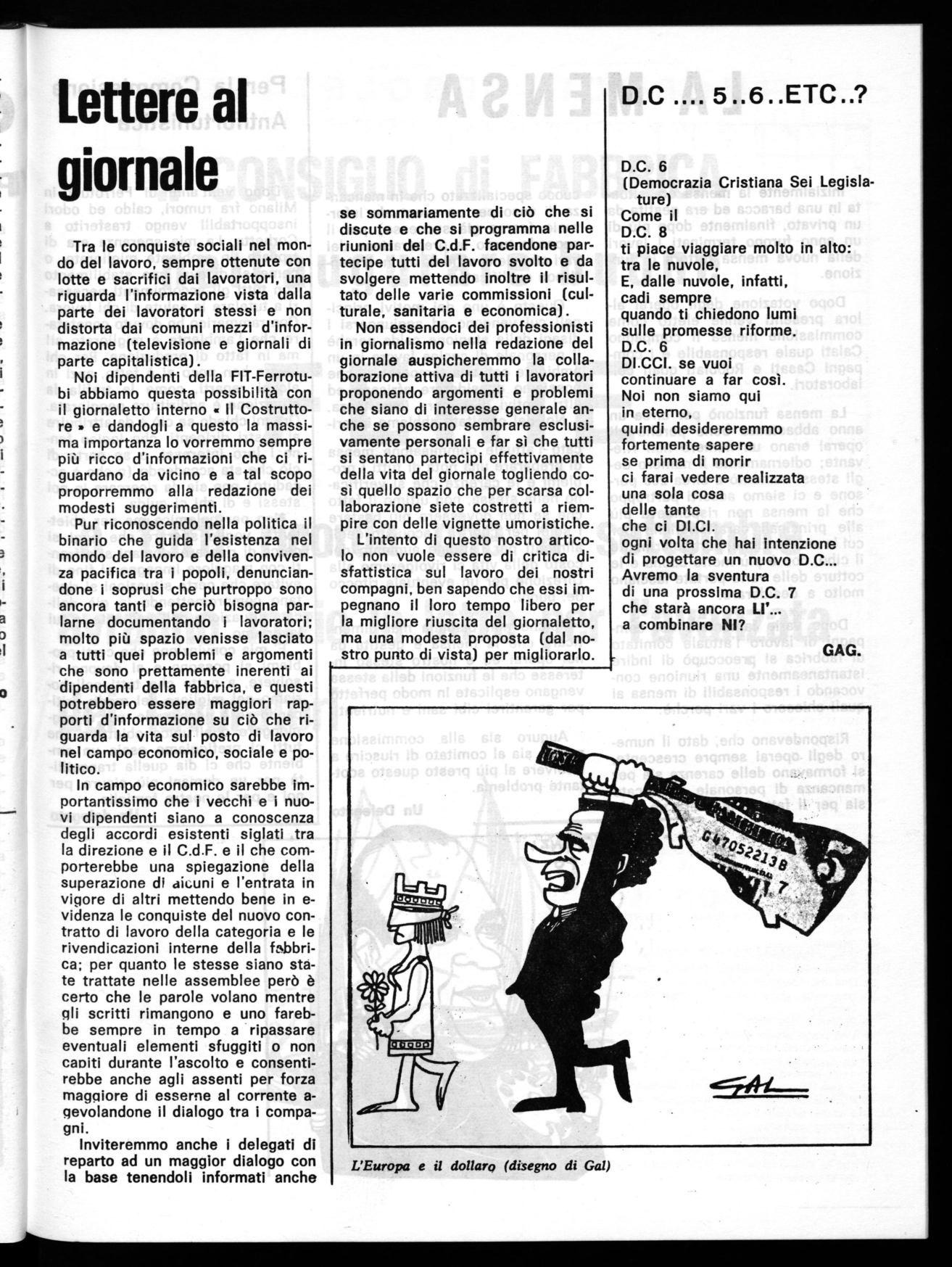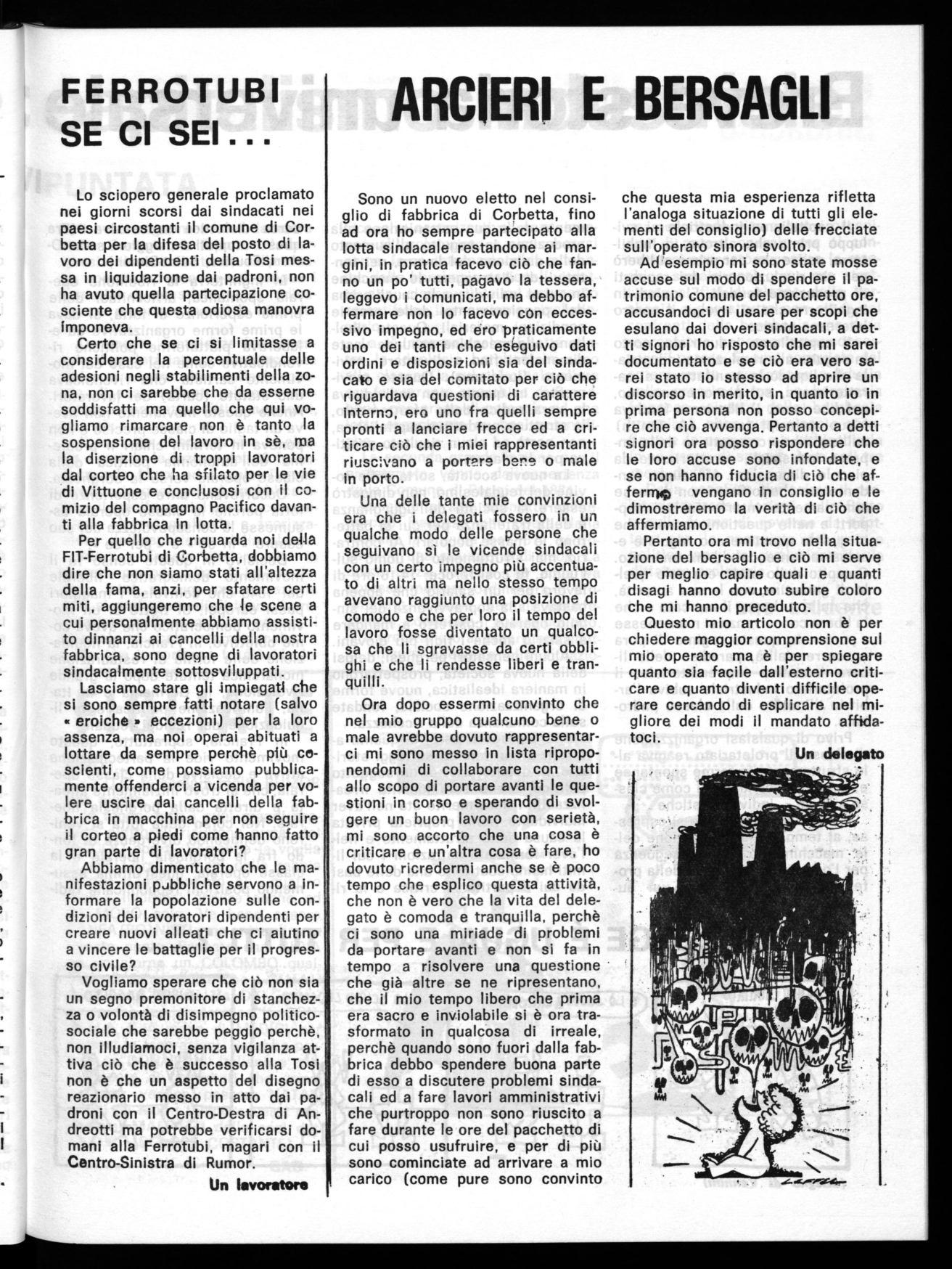 Le recenti elezioni per il rinnovo del C.d.F. nella nostra fabbrica hanno dato risultati che essendo antitetici fra il nuovo e il vecchio stabilimento si prestano a molteplici interpretazioni e io credo sia utile a questo riguardo un commento chiarificatore che se non altro aiuti (almeno lo spero) i nuovi eletti a ponderare responsabilmente sul modo migliore di svolgere la loro attività di delegati di linea.