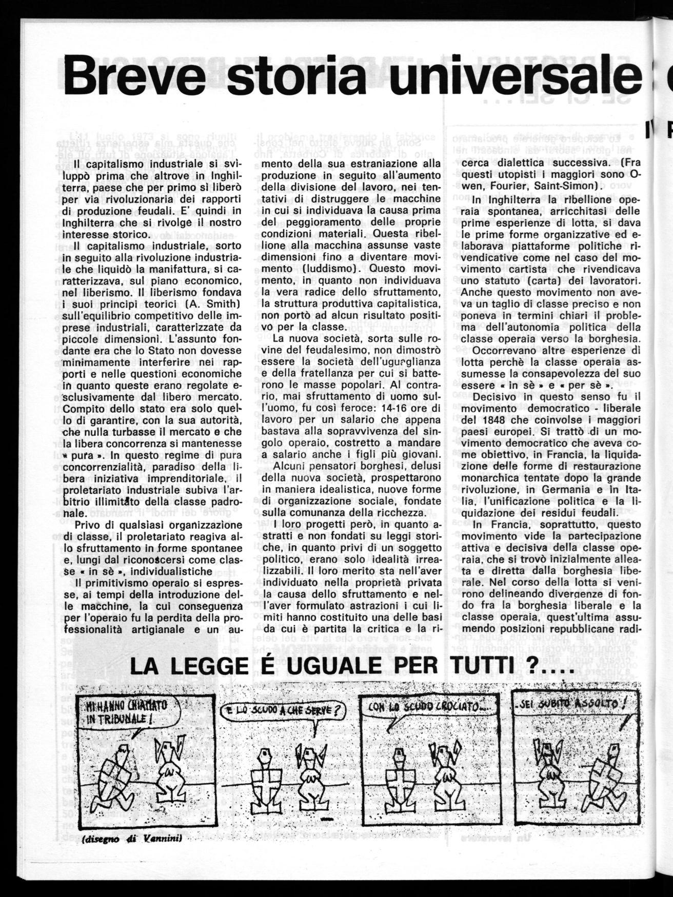 Per le « matricole » vorrei aggiungere che data la compless»-à del lavoro che oggi deve svolgere il delegato, non tutti riusciranno a portarlo a termine con successo perciò una mancata rielezione arizichè essere motivo di risentimento, deve stimolare maggiormente ad approfondire le conoscenze politico-sociali del sindacato e a continuare con più impegno di prima a battersi per migliorare le condizioni di vita della classe lavoratrice; buon lavoro a tutto il C.d.F. (un operaio)