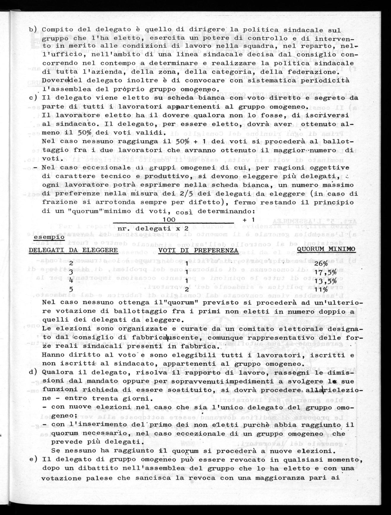 Ogni gruppo omogeneo elegge un solo delegato, e solo per casi limitatissimi ed eccezionali, dovuti a ragioni oggettive di carattere tecnico e produttivo, si eleggono più delegati.