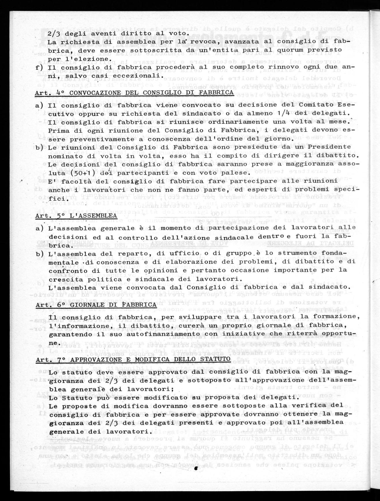 Art. 2° STRUTTURE DEL CONSIGLIO DI FABBRICA