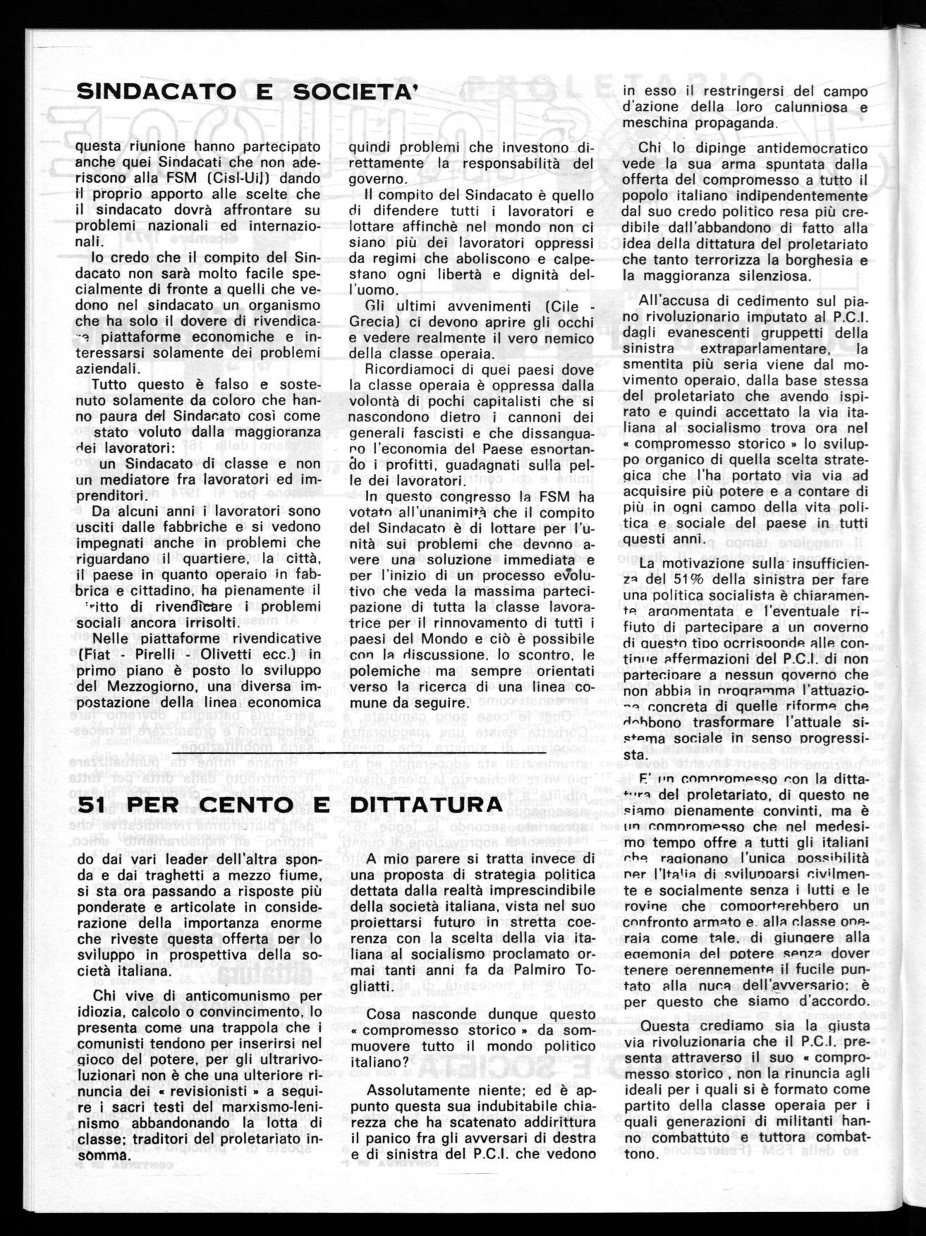 Questa crediamo sia la giusta via rivoluzionaria che il P.C.I. presenta attraverso il suo « compromesso storico , non la rinuncia agli ideali per i quali si è formato come partito della classe operaia per i quali generazioni di militanti hanno combattuto e tuttora combattono.
