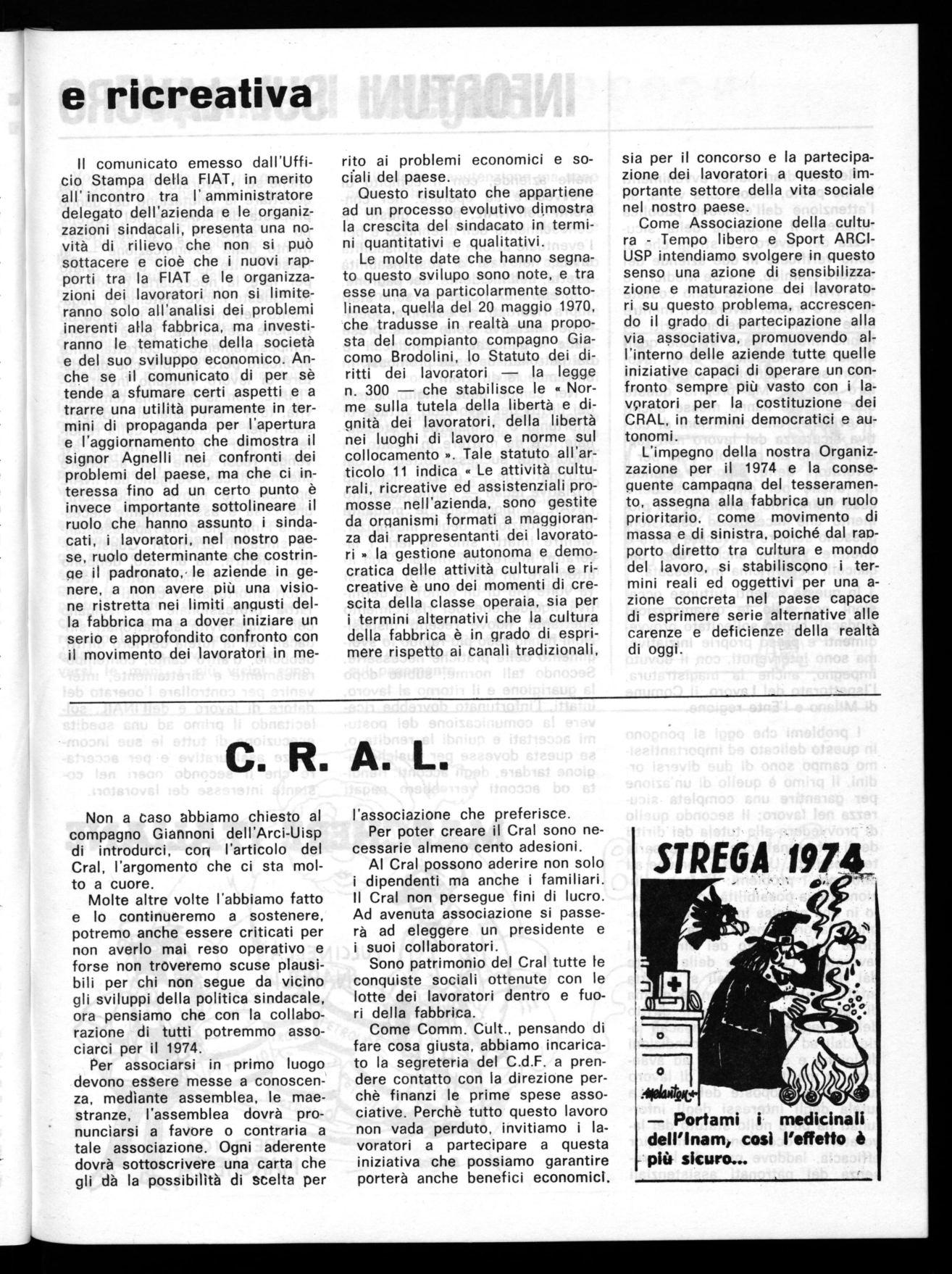 L'impegno della nostra Organizzazione per il 1974 e la conseguente campagna del tesseramento, assegna alla fabbrica un ruolo prioritario, come movimento di massa e di sinistra, poiché dal rapporto diretto tra cultura e mondo del lavoro, si stabiliscono i termini reali ed oggettivi per una azione concreta nel paese capace di esprimere serie alternative alle carenze e deficienze della realtà di oggi.
