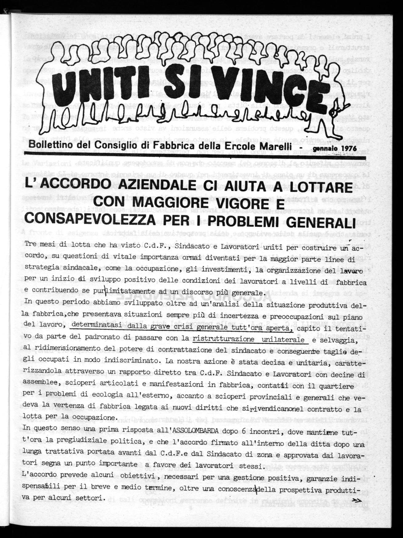 Bollettino del Consiglio di Fabbrica della Ercole Marelli - gennaio 1976