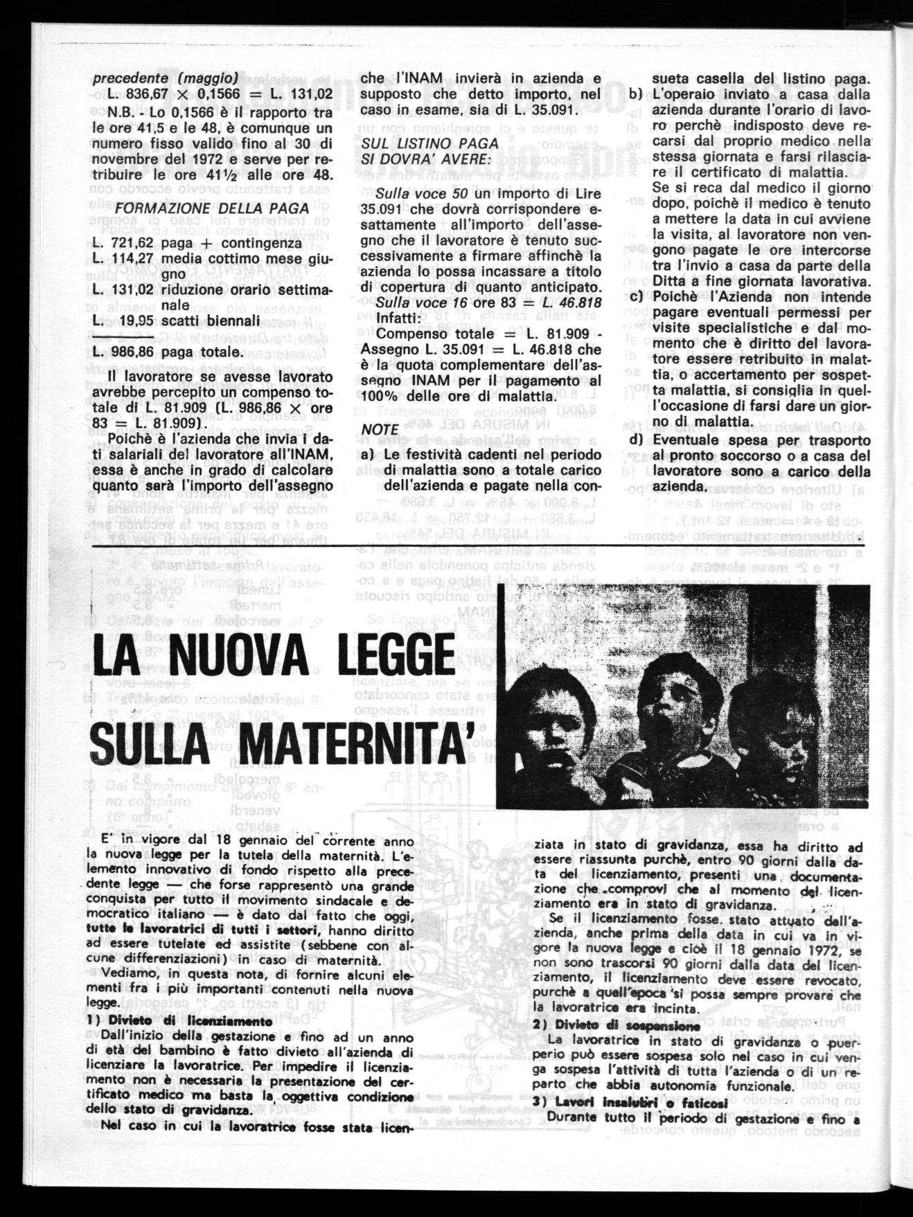 Purtroppo, la crisi creata dal padrone e subita dai lavoratori, non ci ha permesso di concordare subito il modo di anticipare l'assegno dell'INAM per cui vi è stato un primo metodo di pagamento dal 1° gennaio al 31 maggio '72 e un secondo metodo, questo concorda-