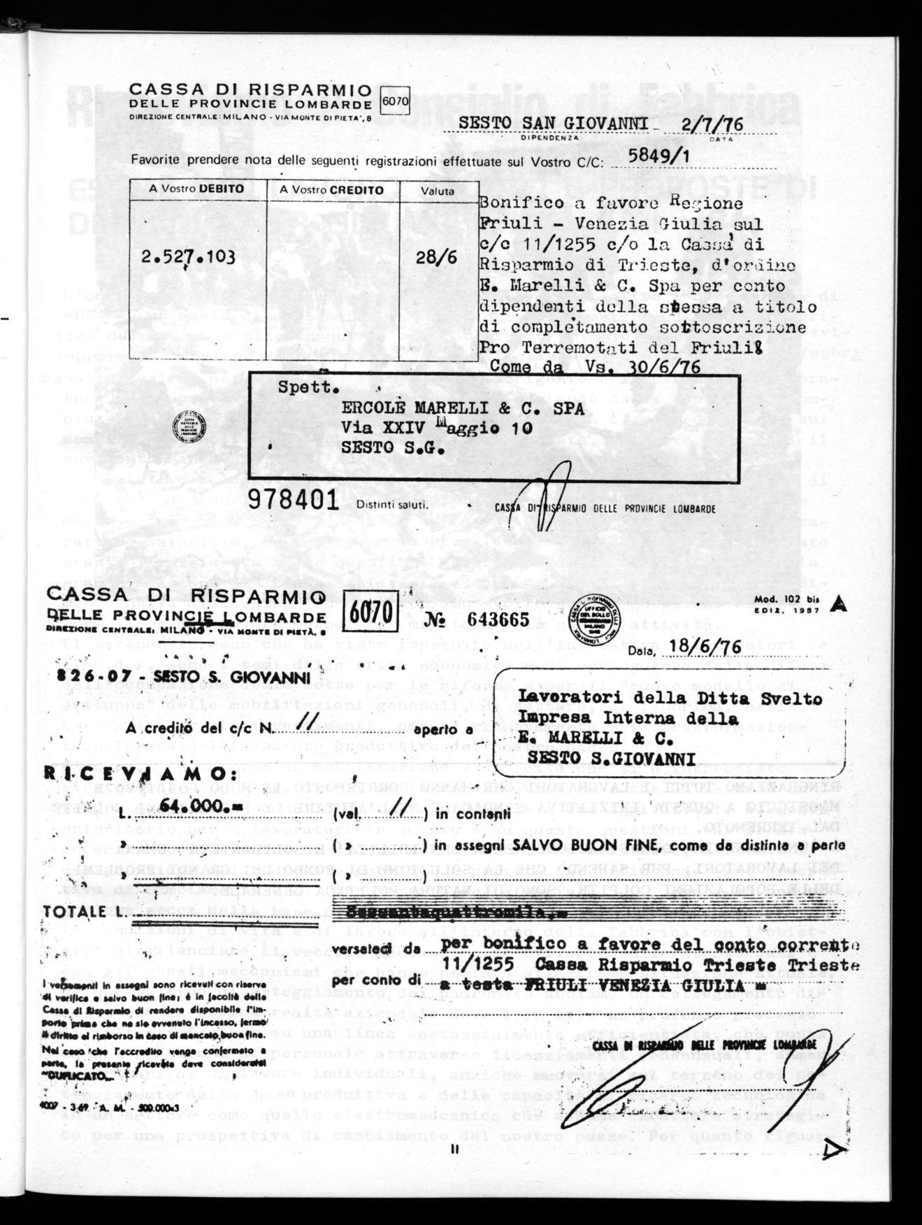Previsione ristrutturazione fine '76inizio '77. I capannoni e gli uffici so no quasi ultimati - i progetti ed i pia ni di lavoro non li conosciamo ancora, la ditta ci ha informati che si sta con trattando con la società Delchi di Villasanta per la compera della fabbrica.