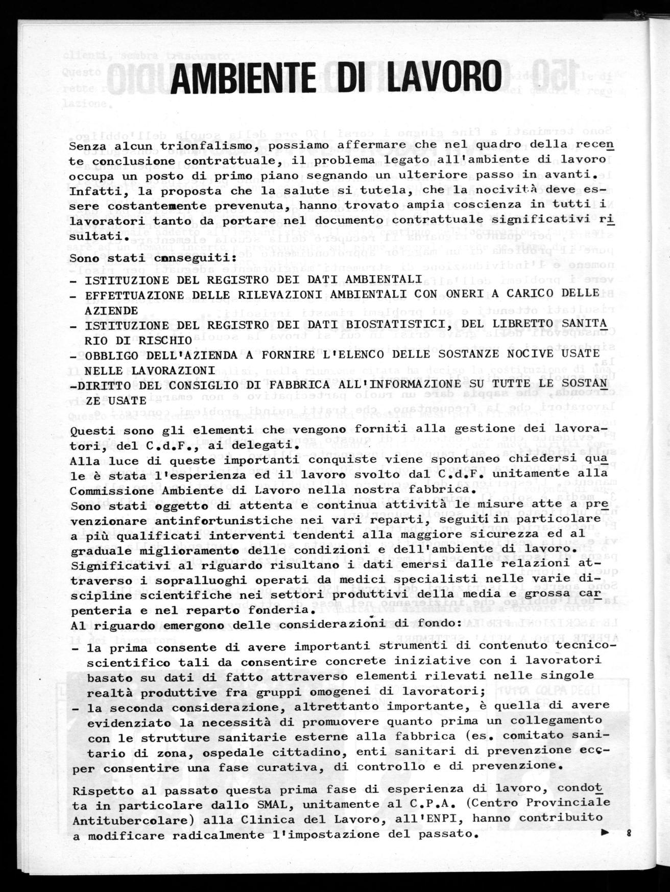 Questo come esigenza di prepararsi meglio nei prossimi mesi per affrontare i problemi qui denunciati con una mobilitazione generale dei lavoratori, nell'indirizzo di acqui sire maggiori risultati del passato, nel quadro della gestione dei nuovi diritti con— trattuali.