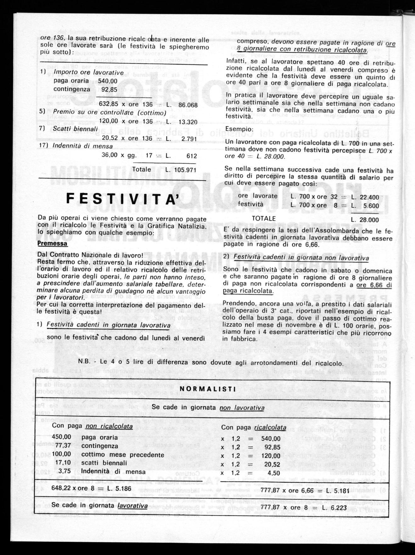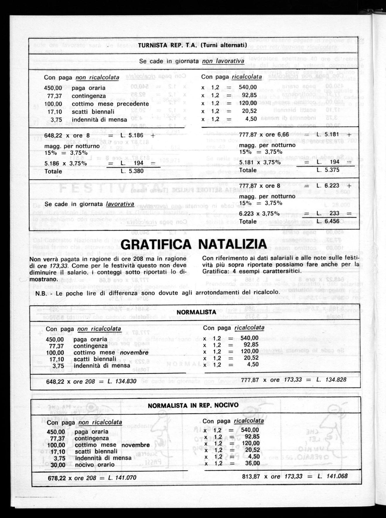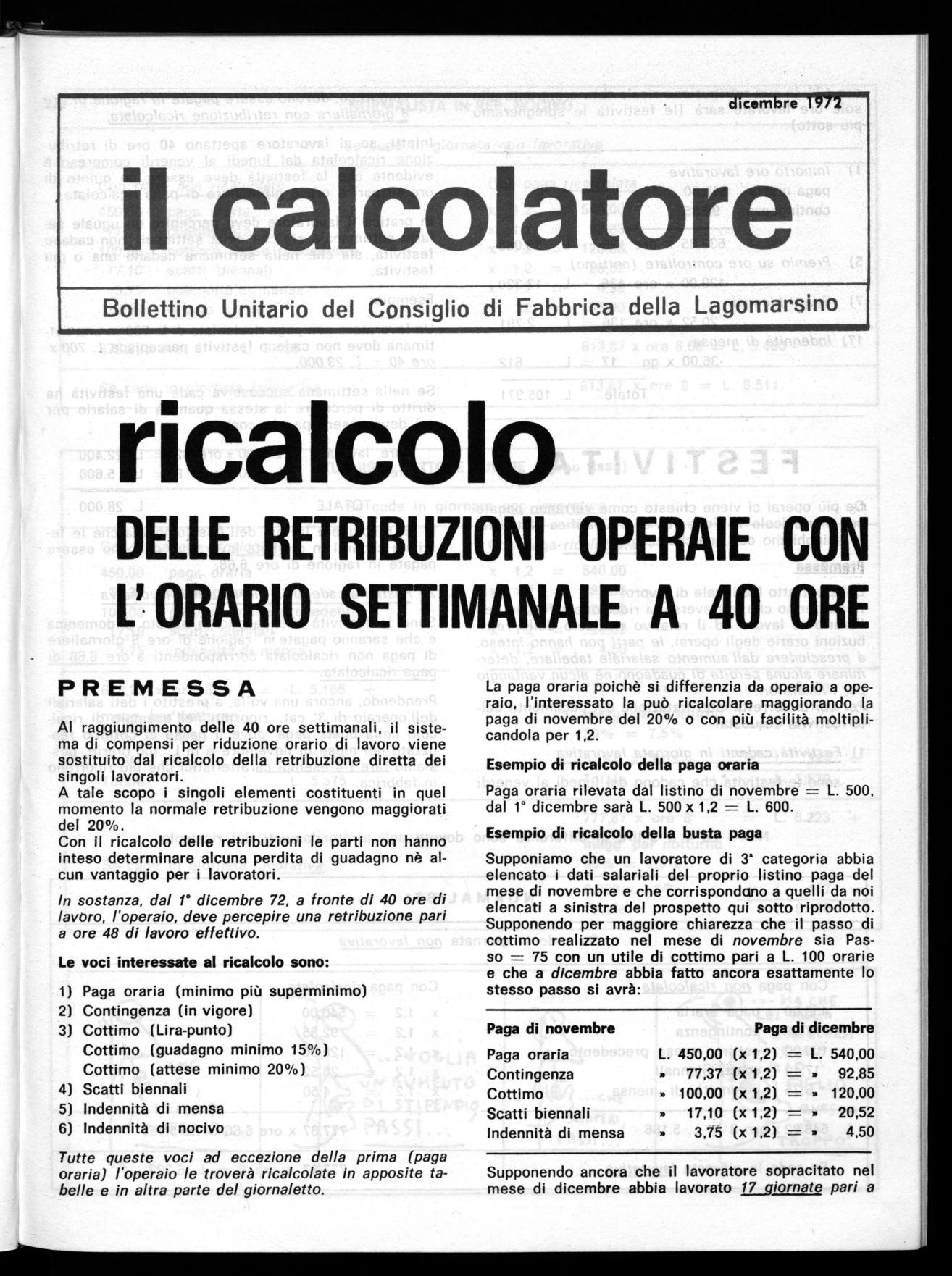Tutte queste voci ad eccezione della prima (paga oraria) l'operaio le troverà ricalcolate in apposite tabelle e in altra parte del giornaletto.
