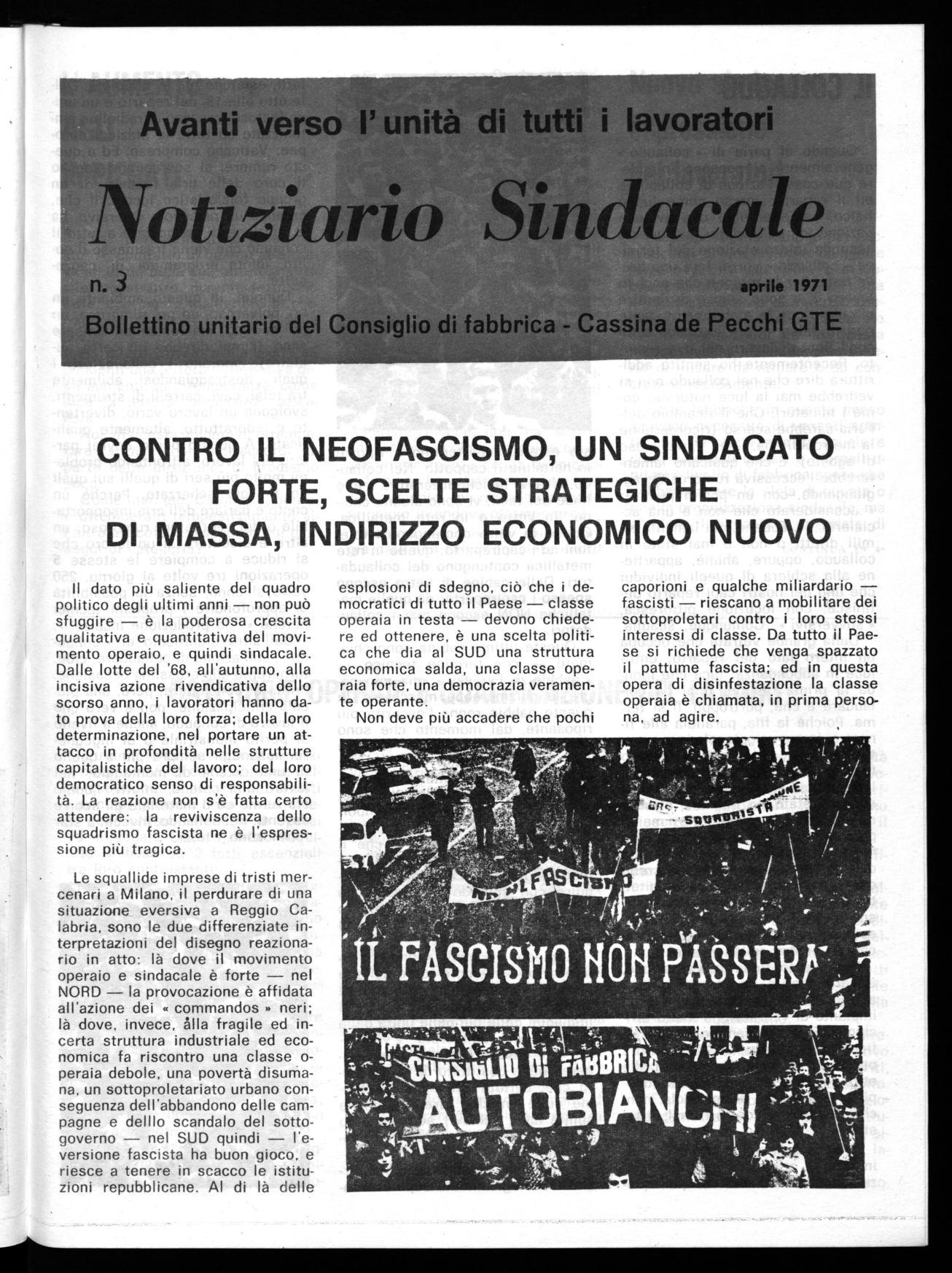 Bollettino unitario del Consiglio di fabbrica - Cassina de Pecchi GTE