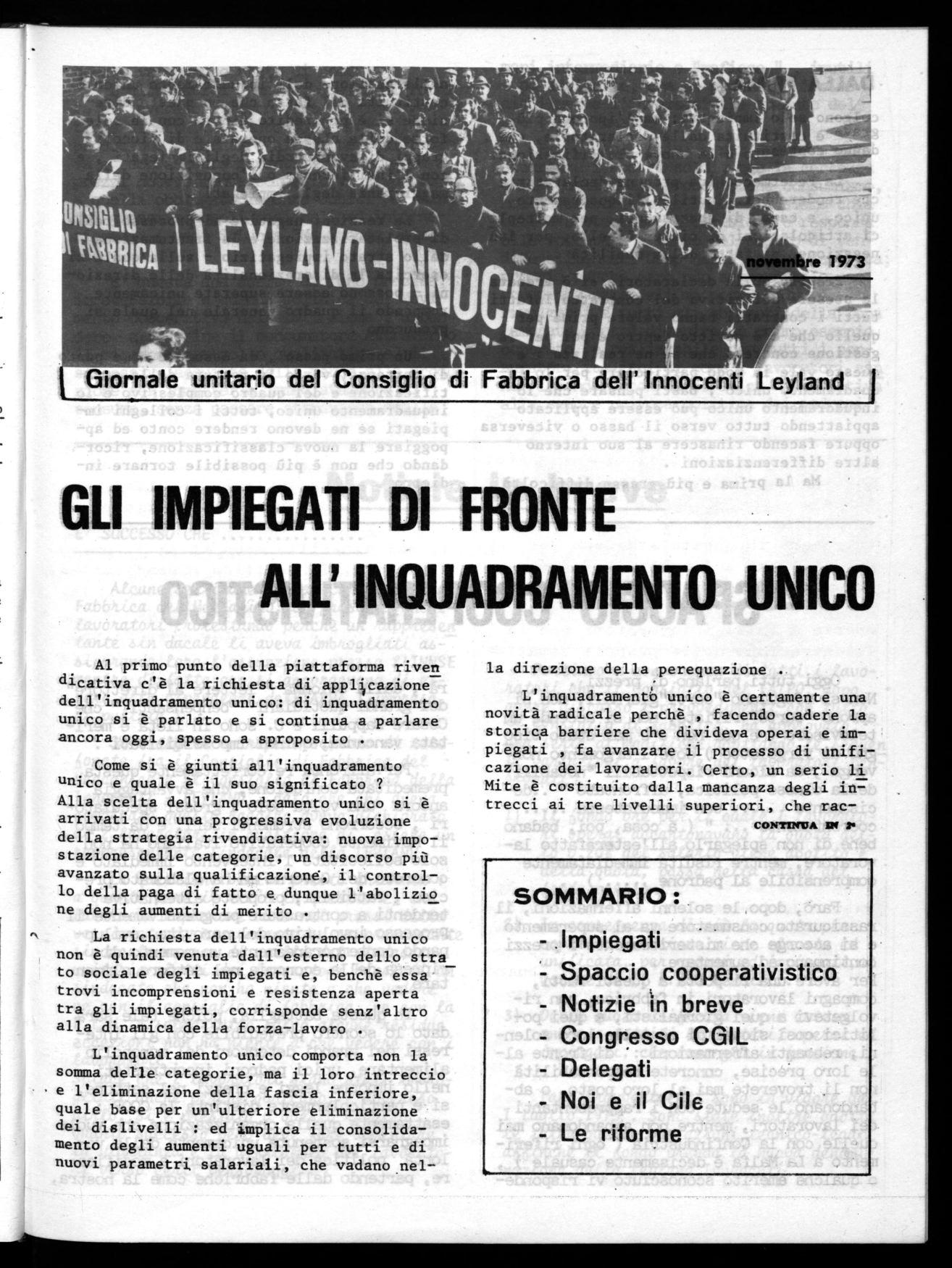 Giornale unitario del Consiglio di Fabbrica dell Innocenti Leyland