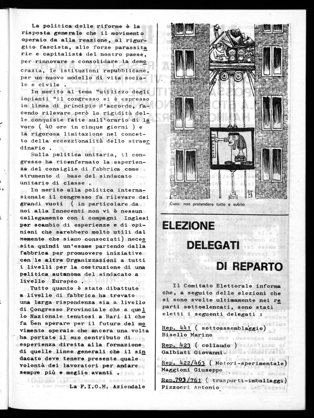 Per avere una risposta a questi fatti, compagni lavoratori in fabbrica, non rivolgetevi a quei giornalisti, a quei politici così sicuri di sè nelle loro solenni, reboanti affermazioni : di fronte al,le loro precise, cnncrete responsabilità non li troverete mai al loro posto, o abbandonano le sedute con i rappresentanti dei lavoratori, mentre non abbandonano mai quelle con la Confindustria ( ogni riferimento a La Malfa è decisamente casuale ) , o qualche emerito sconosciuto vi risponde-