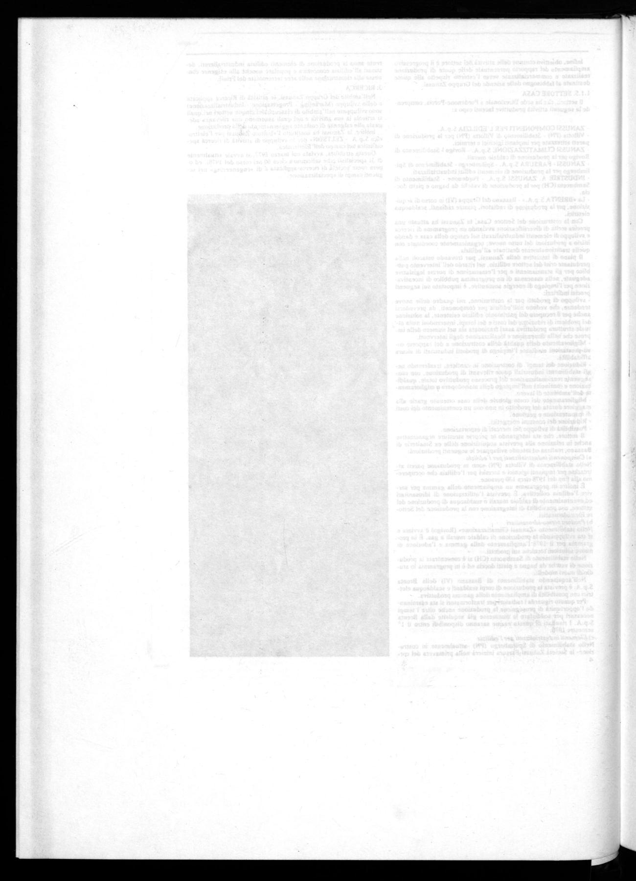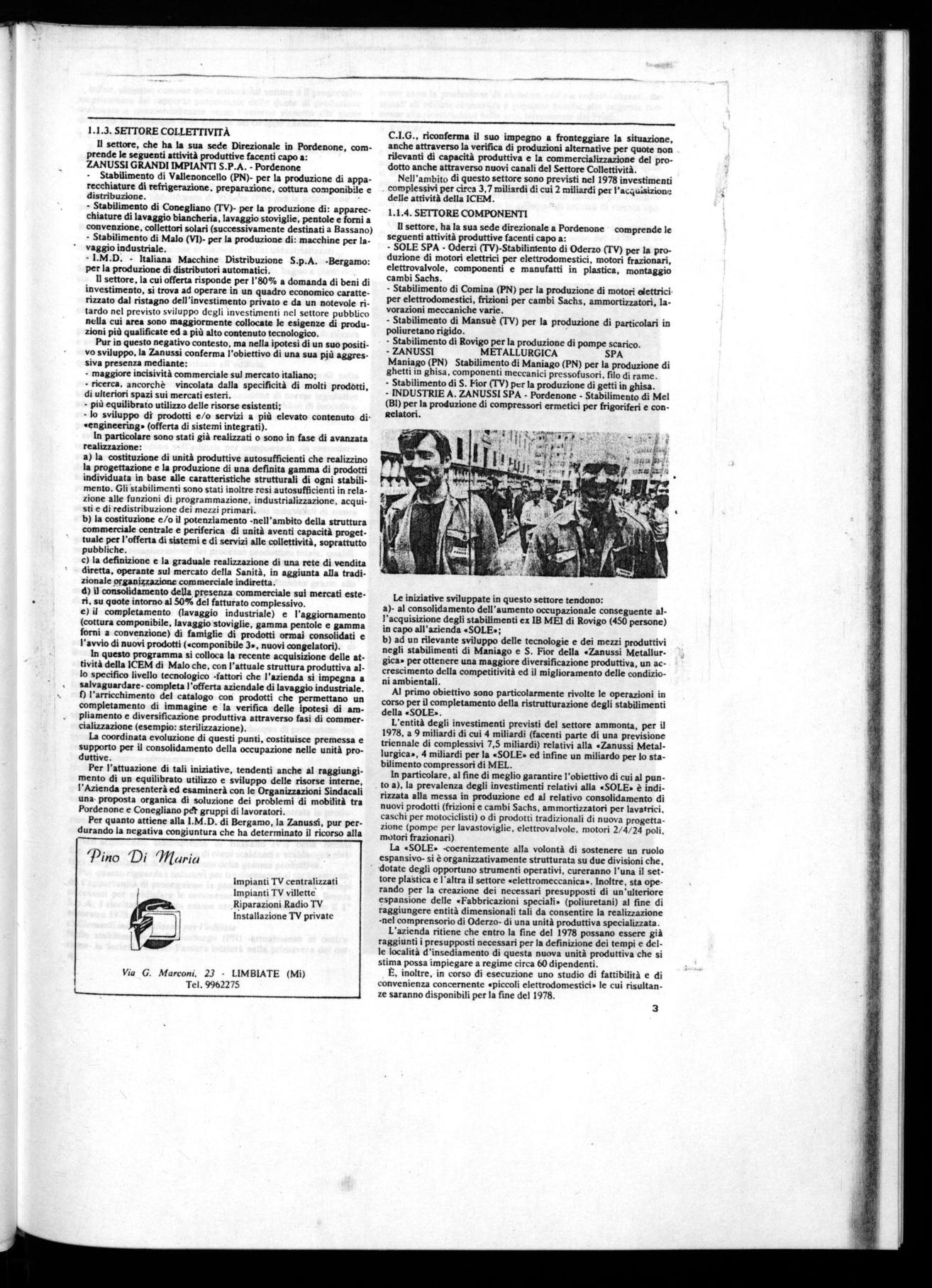 La Zanussi riconferma il proprio attivo impegno di collaborazio ne per la definizione e attuazione dei piani nazionali dei sottosettori della Componentistica e della Elettronica Civile. Coerentemente colle riconosciute necessità di ristrutturazione e conversione produttiva del settore, che staranno in ogni caso alla base del piano nazionale, la Zanussi è comunque impegnata a ricercare ipotesi di aggregazione atte a rafforzare il settore e la propria presenza in esso.