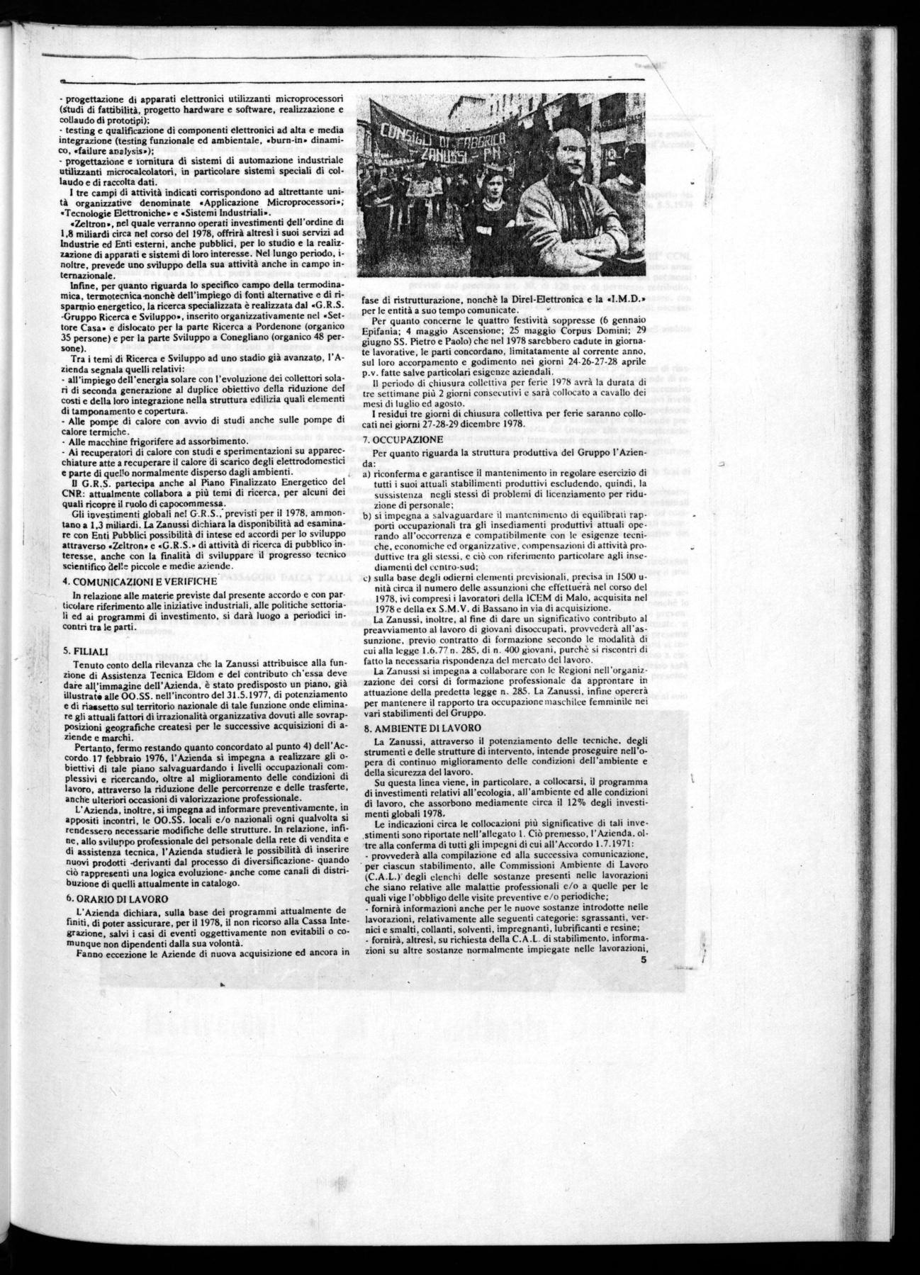 Quèsti obiettivi andavano affermati in una situazione in cui il Gruppo Zanussi si è profondamente modificato assumendo una dimensione diversa da quella che era uscita dall'accordo del febbraio '76.