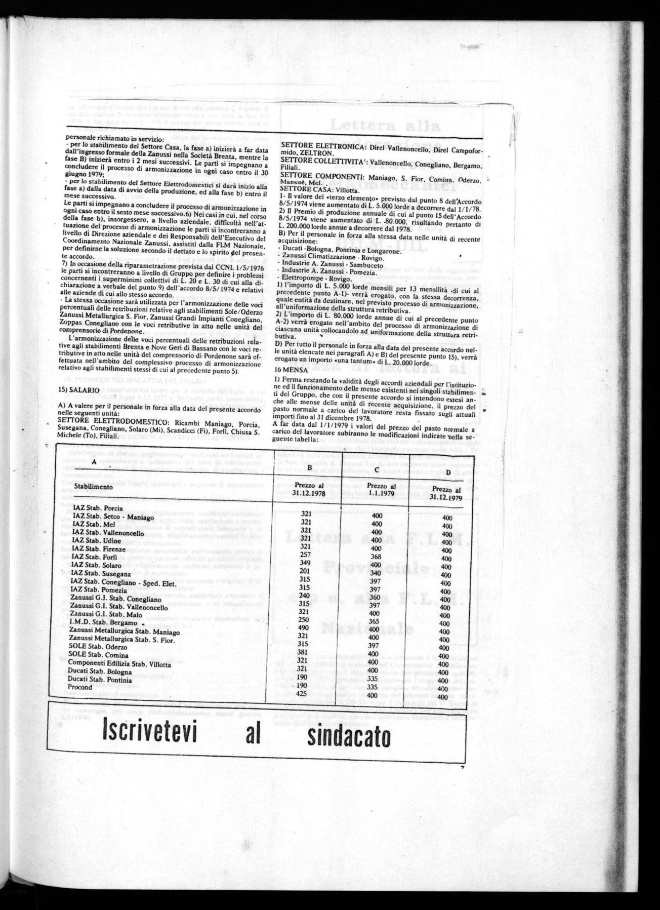 Era necessario, dunque ricondurre ad unità l'insieme del movimento Zanussi attorno a quegli obiettivi di politica settoriale ed occupazionale che hanno costituito l'asse della nostra iniziativa in questi anni, consapevoli che questo comporta per noi misurarsi con i processi di riorganizzazione produttiva e di ristrutturazione che devono essere finalizzati al miglioramento delle condizioni di lavoro e allo sviluppo della politica settoriale.