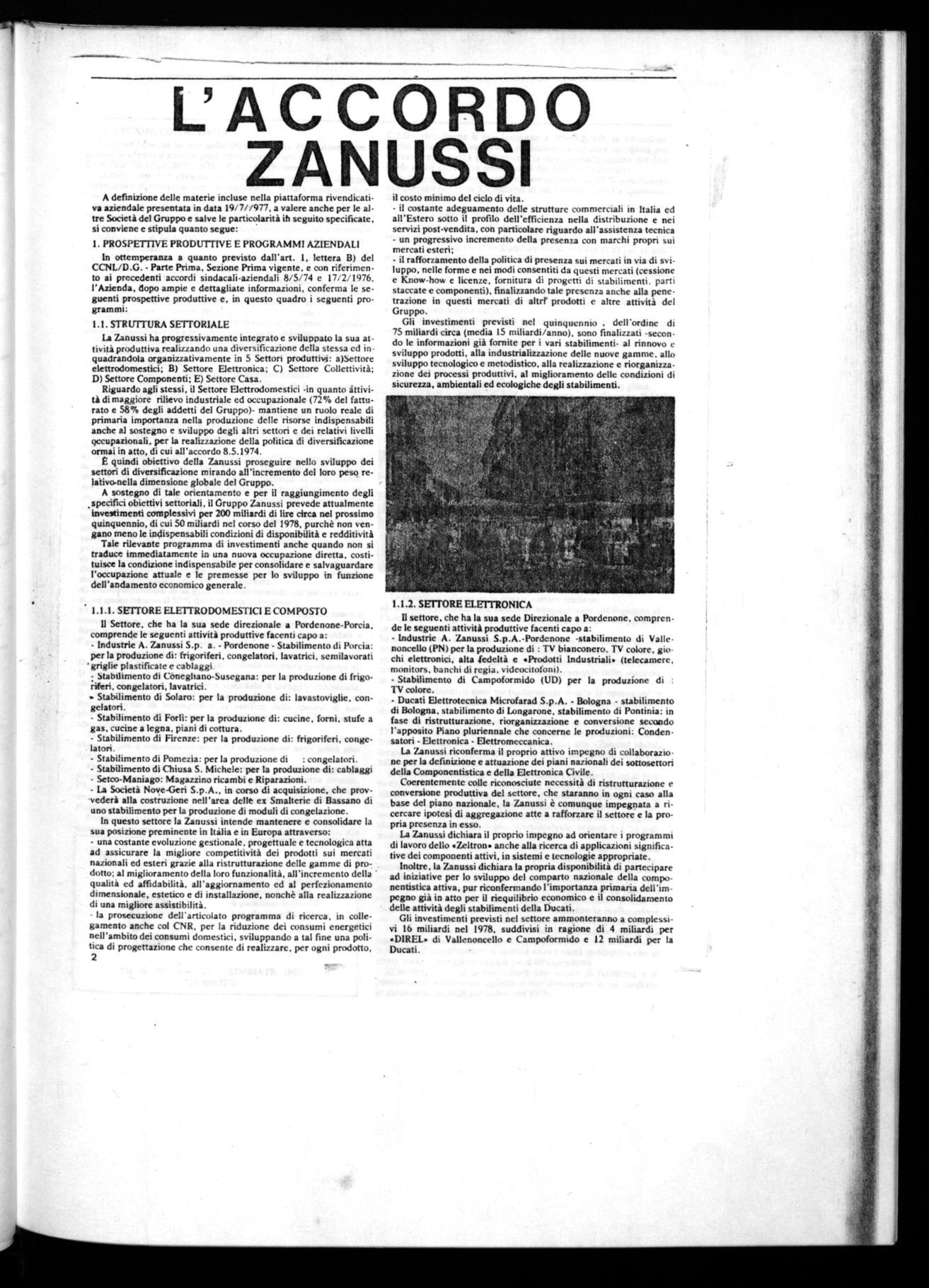 La vertenza aperta con la Zanussi nel settembre del 1977 si è conclusa con l'accordo siglato il 10 febbraio '78. giudizio positivo con cui si è conclusa la consultazione in tutte le fabbriche del Gruppo ci consente di mettere in evidenza due questioni fondamentali che rappresentano oggi l'asse centrale della nostra iniziativa alla Zanussi.