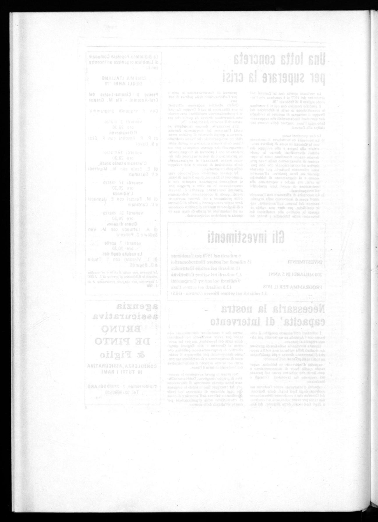 Investimenti 1978 a Milano: 2.000 milioni