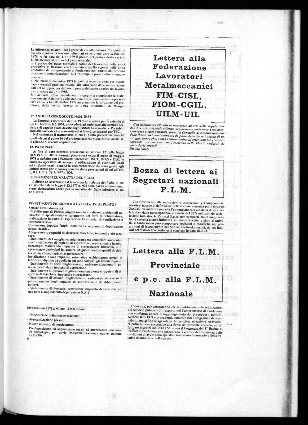Su queste questioni nell'accordo raggiunto con la Zanussi, dopo 5 mesi di lotta, si realizzano importanti risposte che si concretizzano in un vero e proprio programma contenente quantità di investimenti, quote di occupazione, dislocazione delle produzioni a cui devono corrispondere scelte conseguenti a livello di Governo e di Regione in materia di politica economica ed industriale in grado di dare una risposta ai problemi occupazionali.