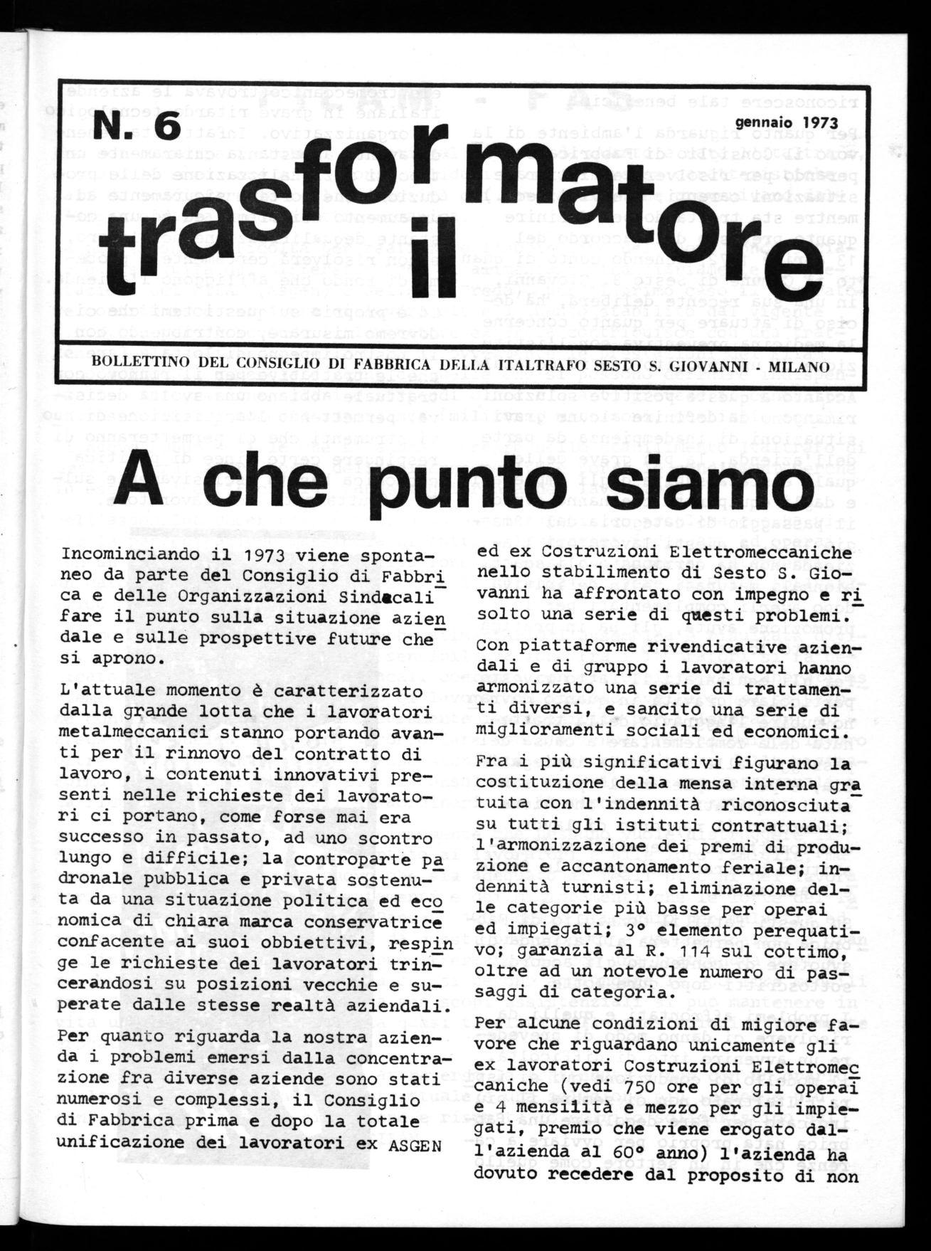 Incominciando il 1973 viene spontaneo da parte del Consiglio di Fabbri ca e delle Organizzazioni Sindacali fare il punto sulla situazione azien dale e sulle prospettive future che si aprono.