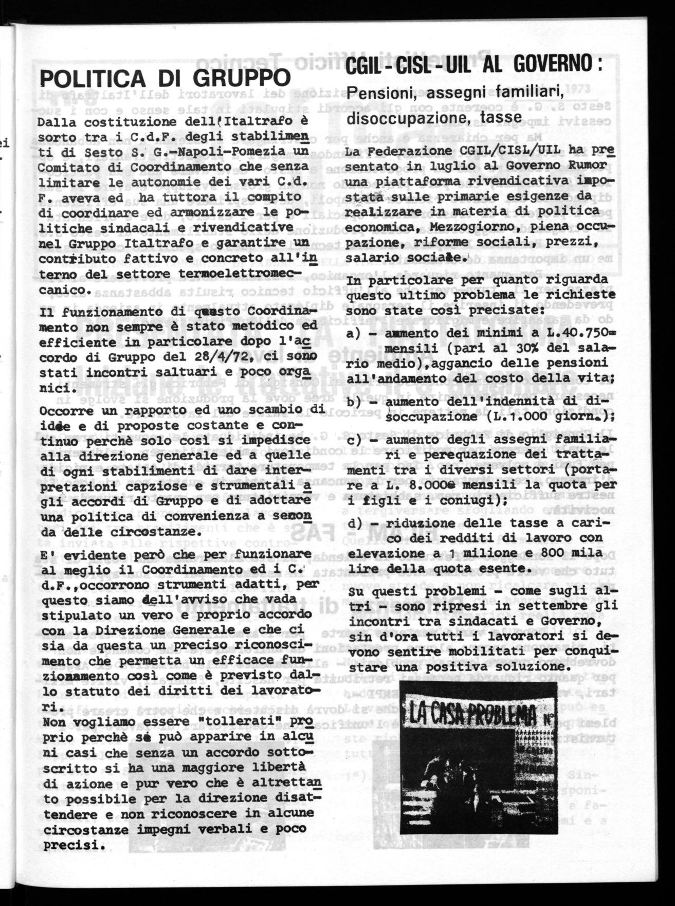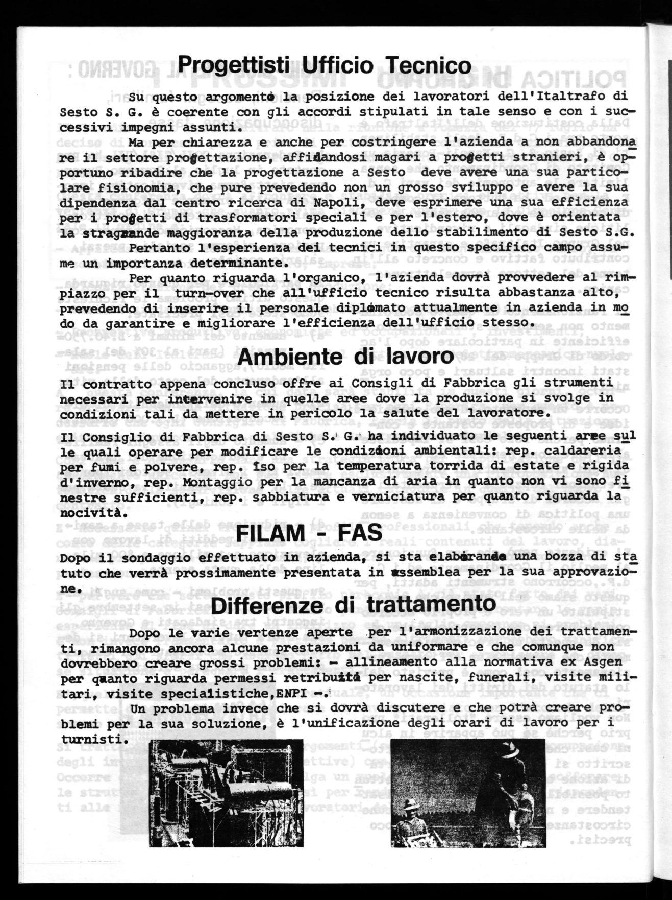 Si tratta di affrontare questi argomenti (compresi quello dell'occupazione, degli investimenti e delle prospettive) con decisione e volontà. Occorre che il Coordinamento svolga un ruolo primario, non per soffocare le strutture di fabbrica, ma bensì per renderle più armoniche e rispondenti alle necessità che hanno i lavoratori dell'Italtrafo.'