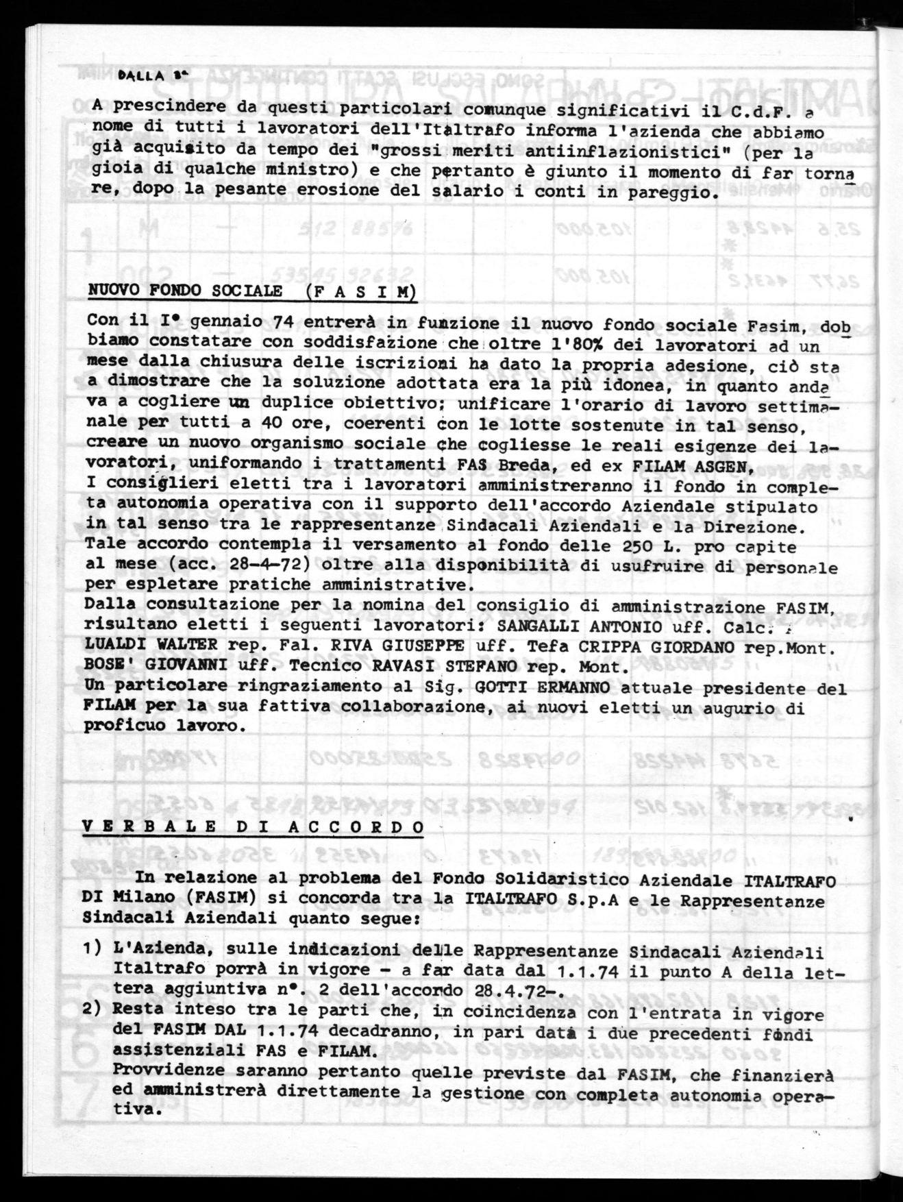 In relazione al problema del Fondo Solidaristico Aziendale ITALTRAFO DI Milano (FASIM) si concorda tra la ITALTRAFO S.p.A e le Rappresentanze Sindacali Aziendali quanto segue: