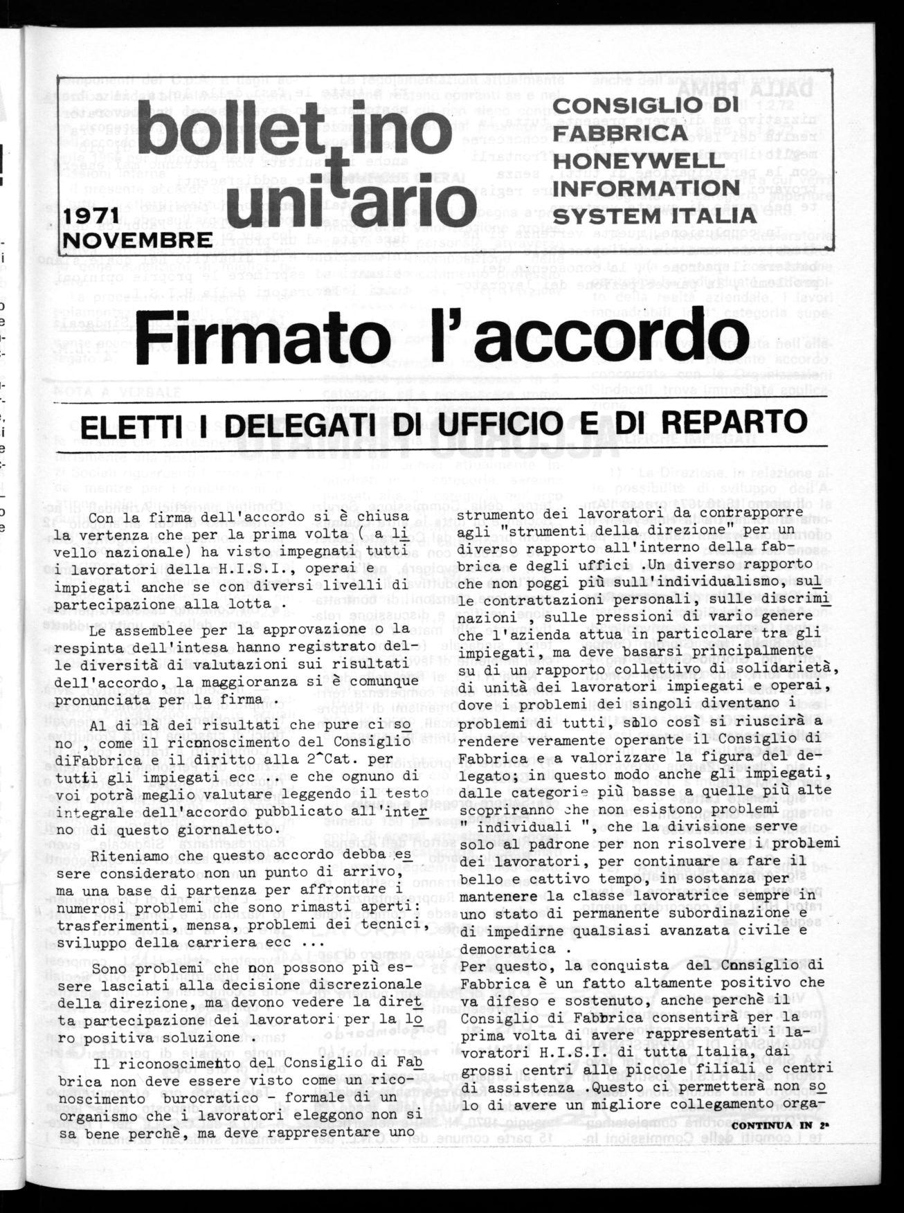 Il giorno 16.10.1971 presso l'Annma di Torino tra la Honeywell Information System Italia, nelle persone dei signori: