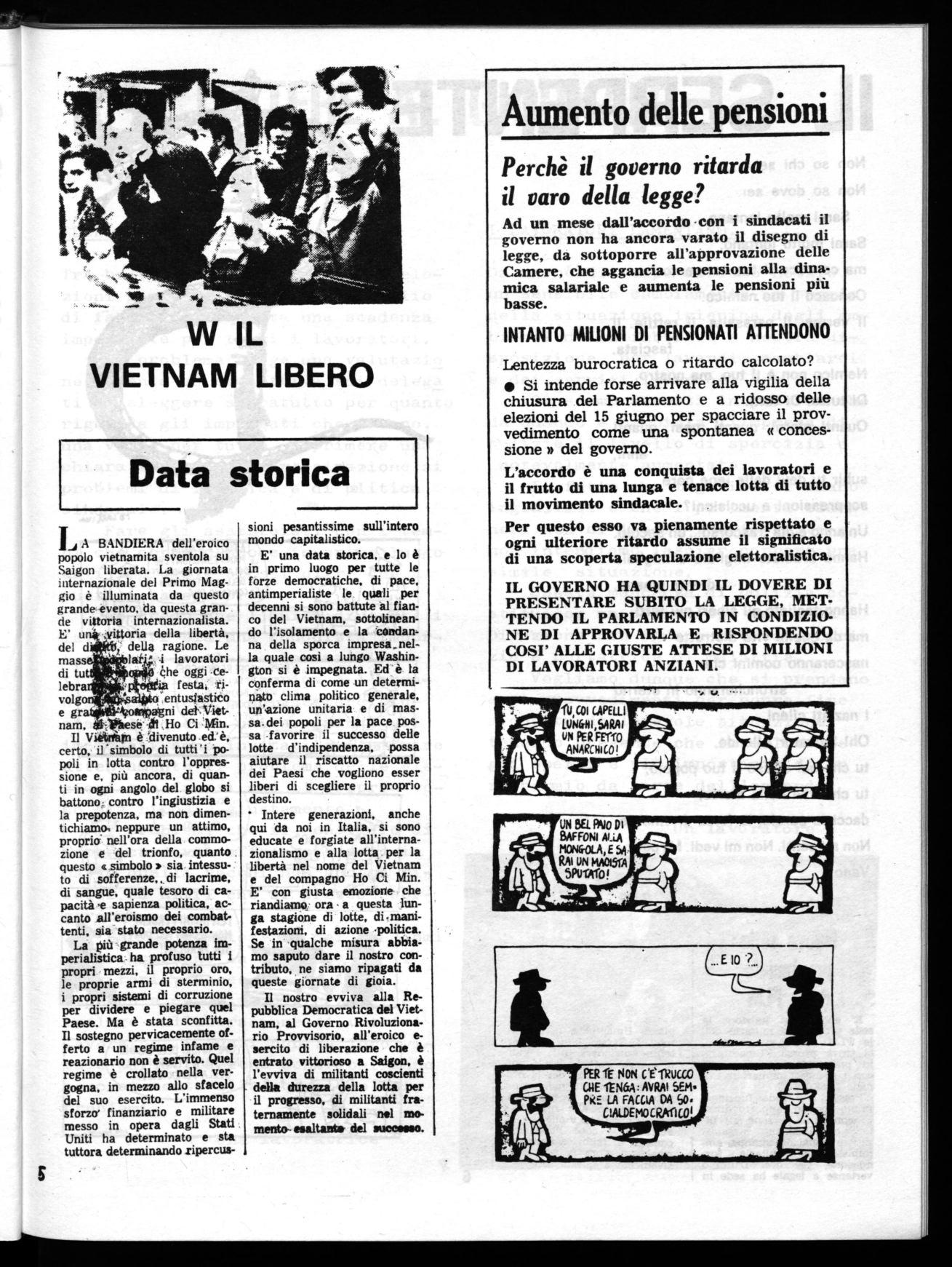 Il nostro evviva alla Repubblica Democratica del Vietnam, al Governo Rivoluzionario Provvisorio, all'eroico esercito di liberazione che è entrato vittorioso a Saigon, è l'evviva di militanti coscienti della durezza della lotta per il progresso, di militanti fraternamente solidali nel momento esaltanti» del successo.