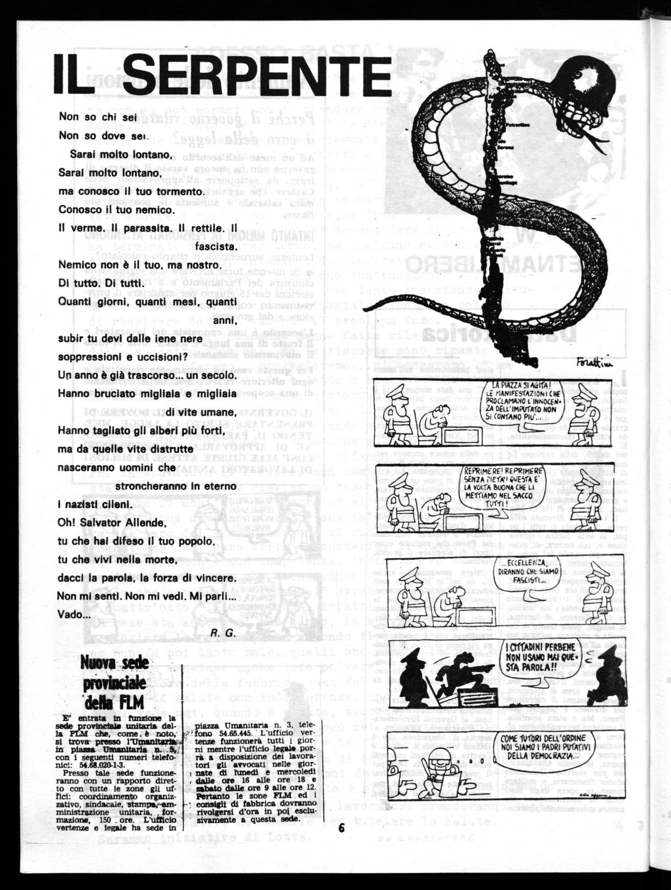 La risposta del 22 data dai lavoratori non può essere disattesa, Milano non può e non deve essere città aperta ai fascisti che possono scorazzare per le strade bastonando e uccidendo inermi cittadini, é necessario un fermo impegno unitario di massa e non soltanto il ricorso a qualche slogans se si vuole davvero eliminare le fonti, i finanziamenti e le centrali eversive; la lotta democratica di tutti i cittadini antifascisti é l'unica forza capace di imprimere una svolta decisiva, di costringere tutti alla rigorosa applicazione della Costituzione e a nuove scelte economiche e produttive. 1~111..