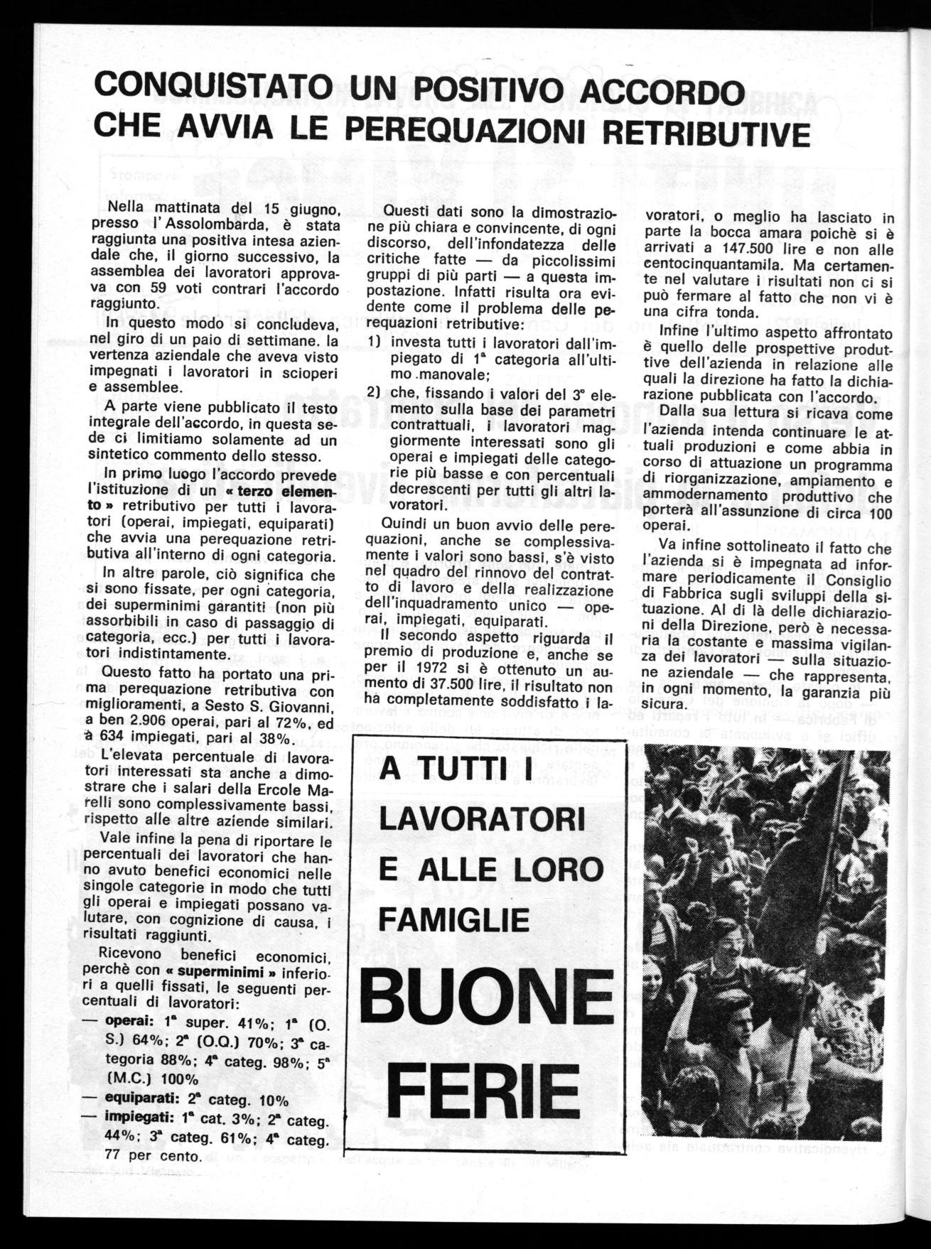 Questo fatto ha portato una prima perequazione retributiva con miglioramenti, a Sesto S. Giovanni, a ben 2.906 operai, pari al 72%, ed -à 634 impiegati, pari al 38%.