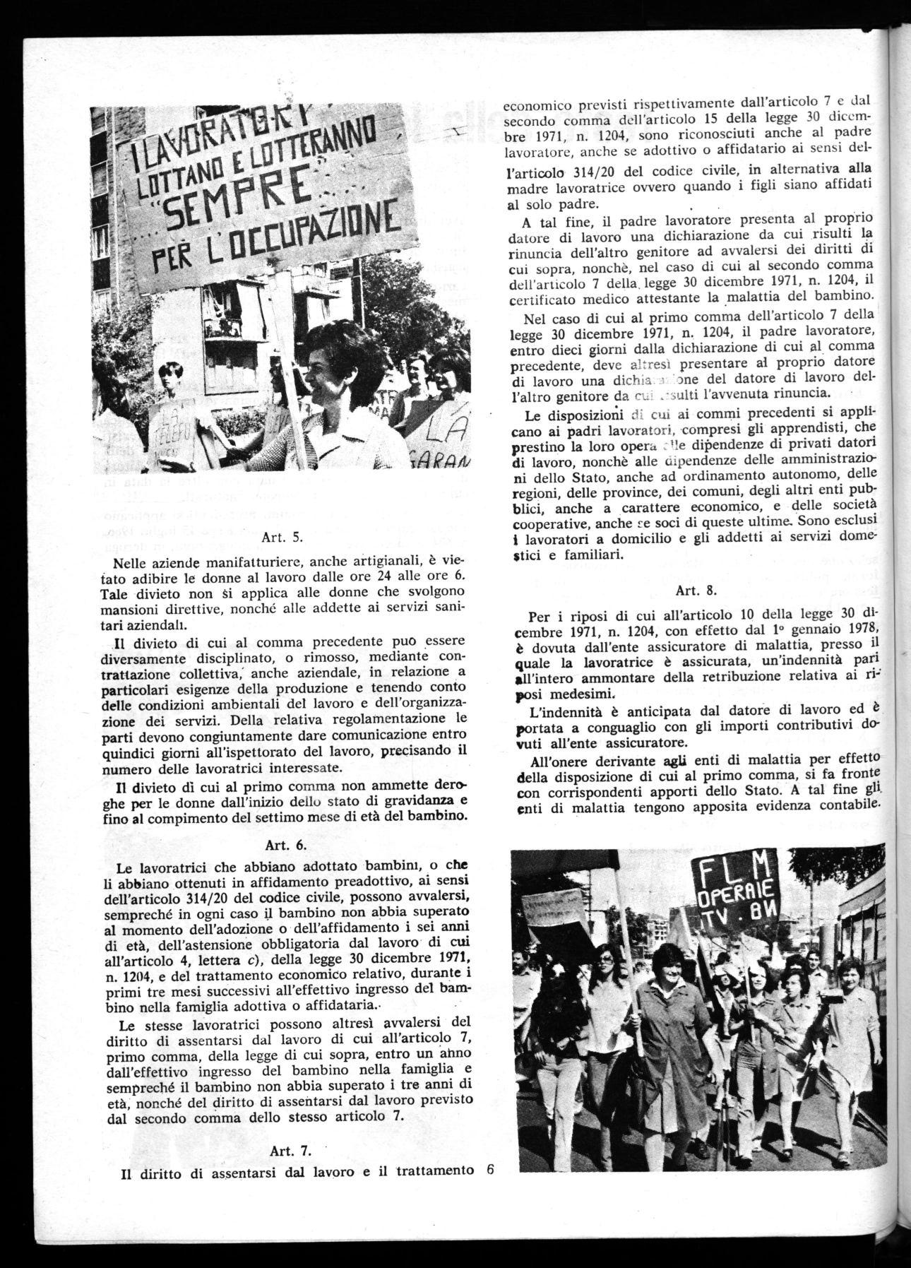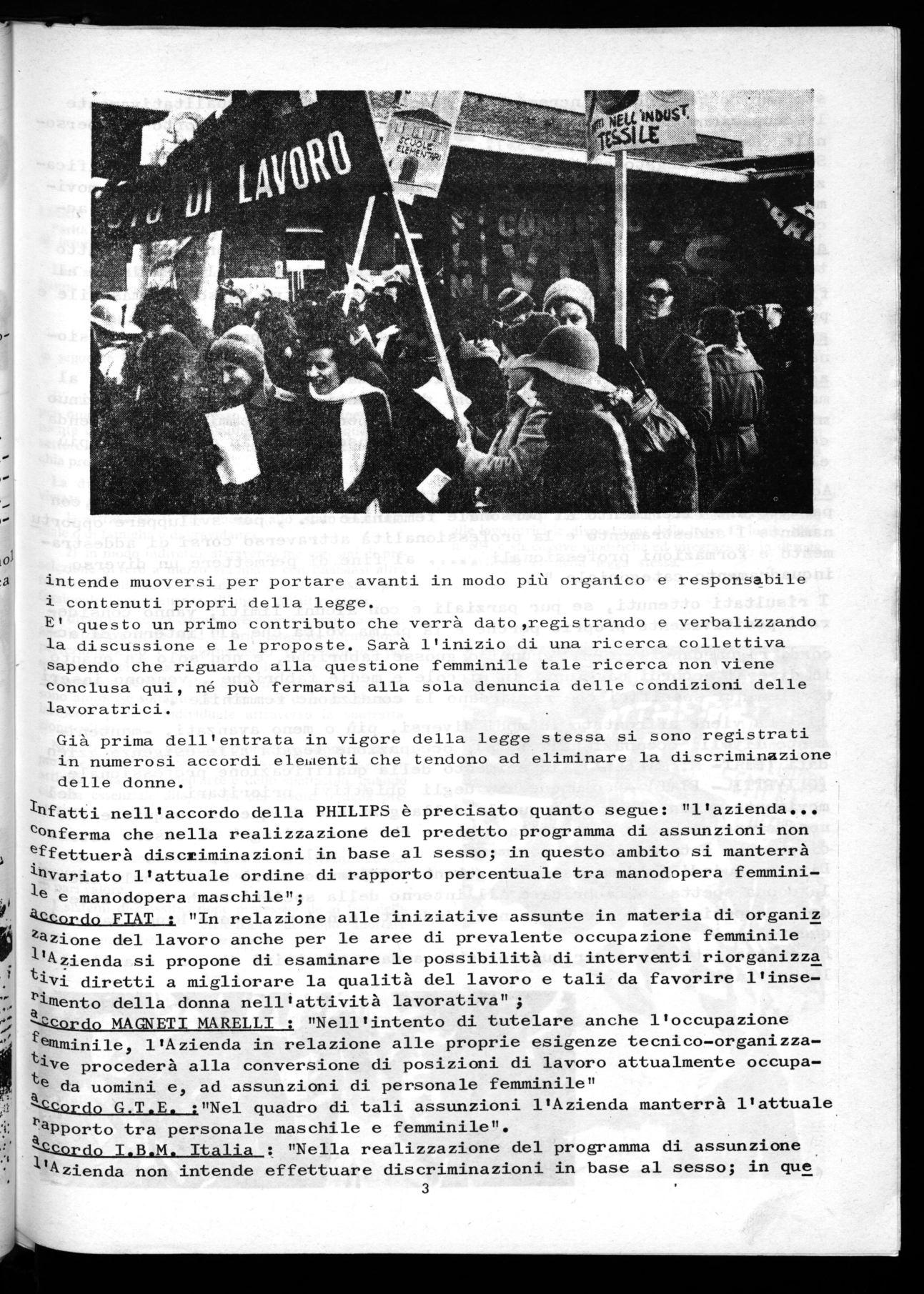 La scelta che dobbiamo fare, affinchè la legge non costituisca semplicemente una premessa per la parità e resti perciò disapplicata, è una mobilitazione tempestiva e qualificata da parte di tutto il movimento sindaca, le2 per imporre l'interpretazione e l'applicazione più avanzata e una pro, posta di impegno di tutte le lavoratrici in una presa di coscienza collet, tiva della prima condizione e della gestionedei problemi che la legge po, ne.