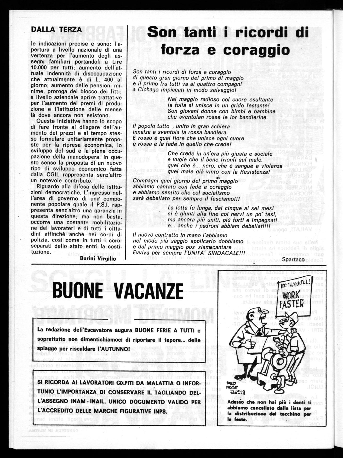 I recenti congressi della UILCISL-CGIL sono stati importantissimi per la volontà unitaria che da questi ne è uscita riconfermando la scelta dei Consigli di Fabbrica quale struttura di base del sindacato; strumenti unitari che hanno tenuto saldamente all'ondata anti unitaria scatenata da Scalia e soci, sostenuti da forze economiche e politiche esterne, le quali vedono nell'unità di tutti i lavoratori uno strumento capace di mettere in pericolo le loro rendite parassitarie.