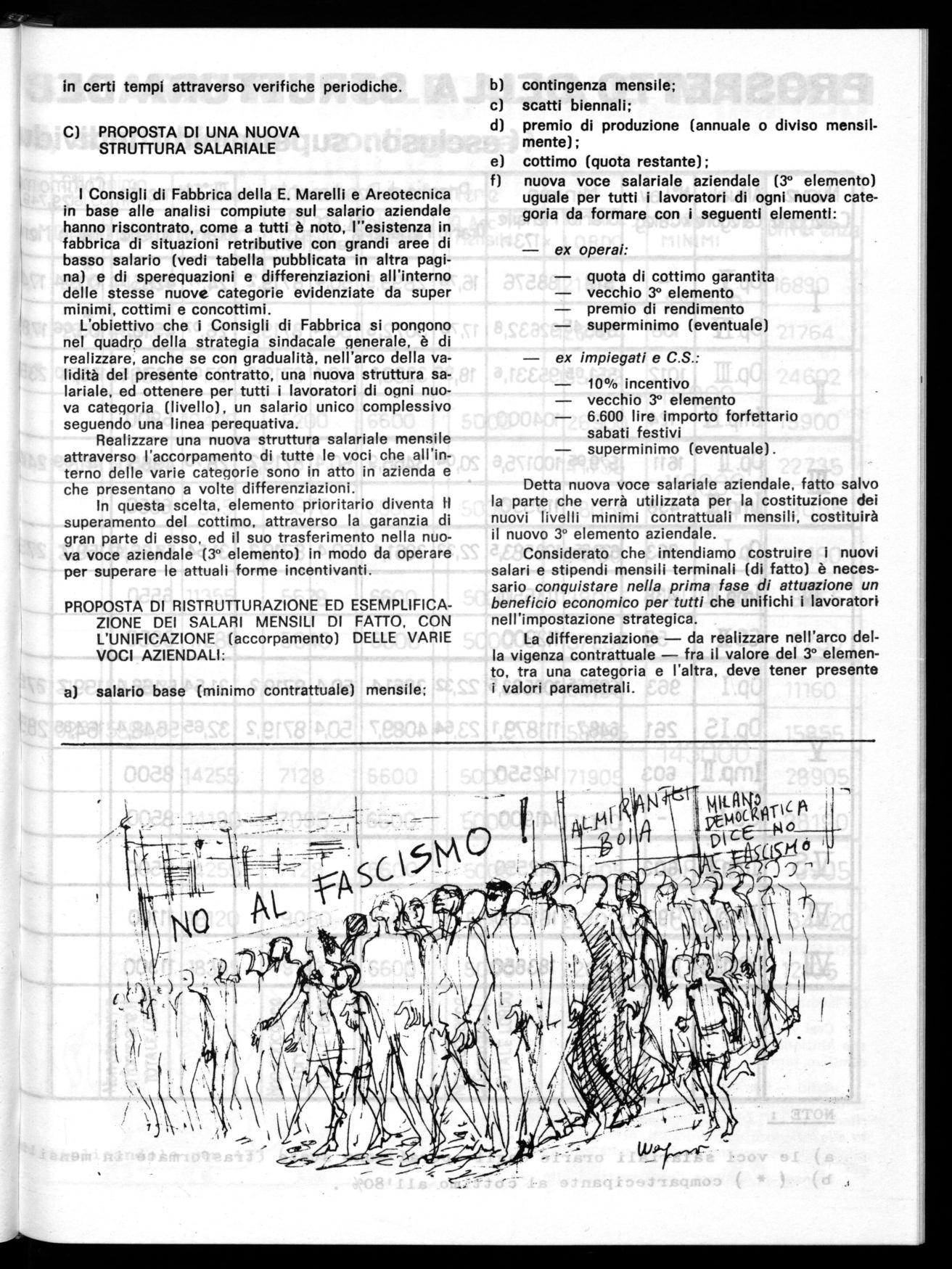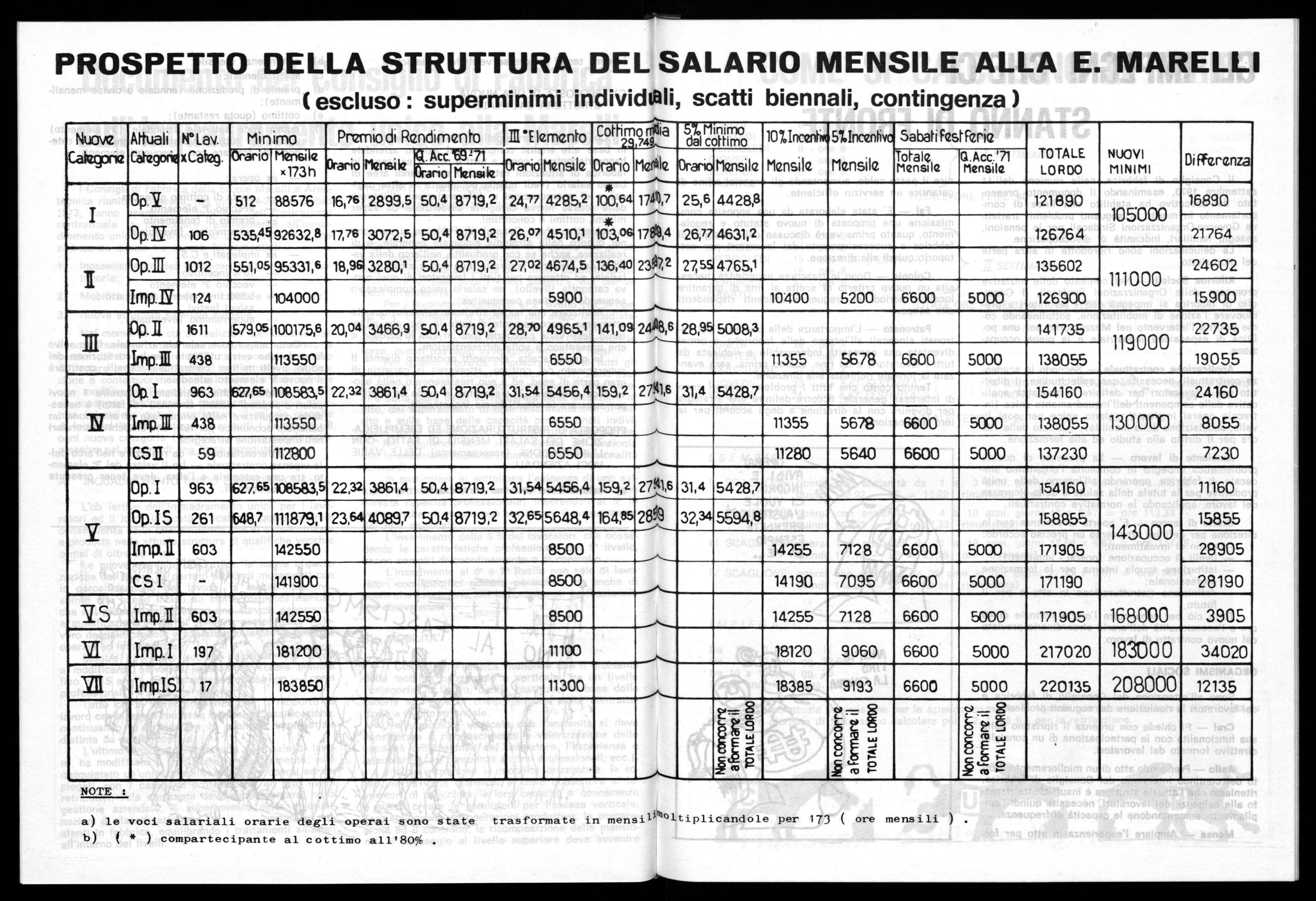 I Consigli di Fabbrica della E. Marelli e Areotecnica in base alle analisi compiute sul salario aziendale hanno riscontrato, come a tutti è noto, l"esistenza in fabbrica di situazioni retributive con grandi aree di basso salario (vedi tabella pubblicata in altra pagina) e di sperequazioni e differenziazioni all'interno delle stesse nuove categorie evidenziate da super minimi, cottimi e concottimi.