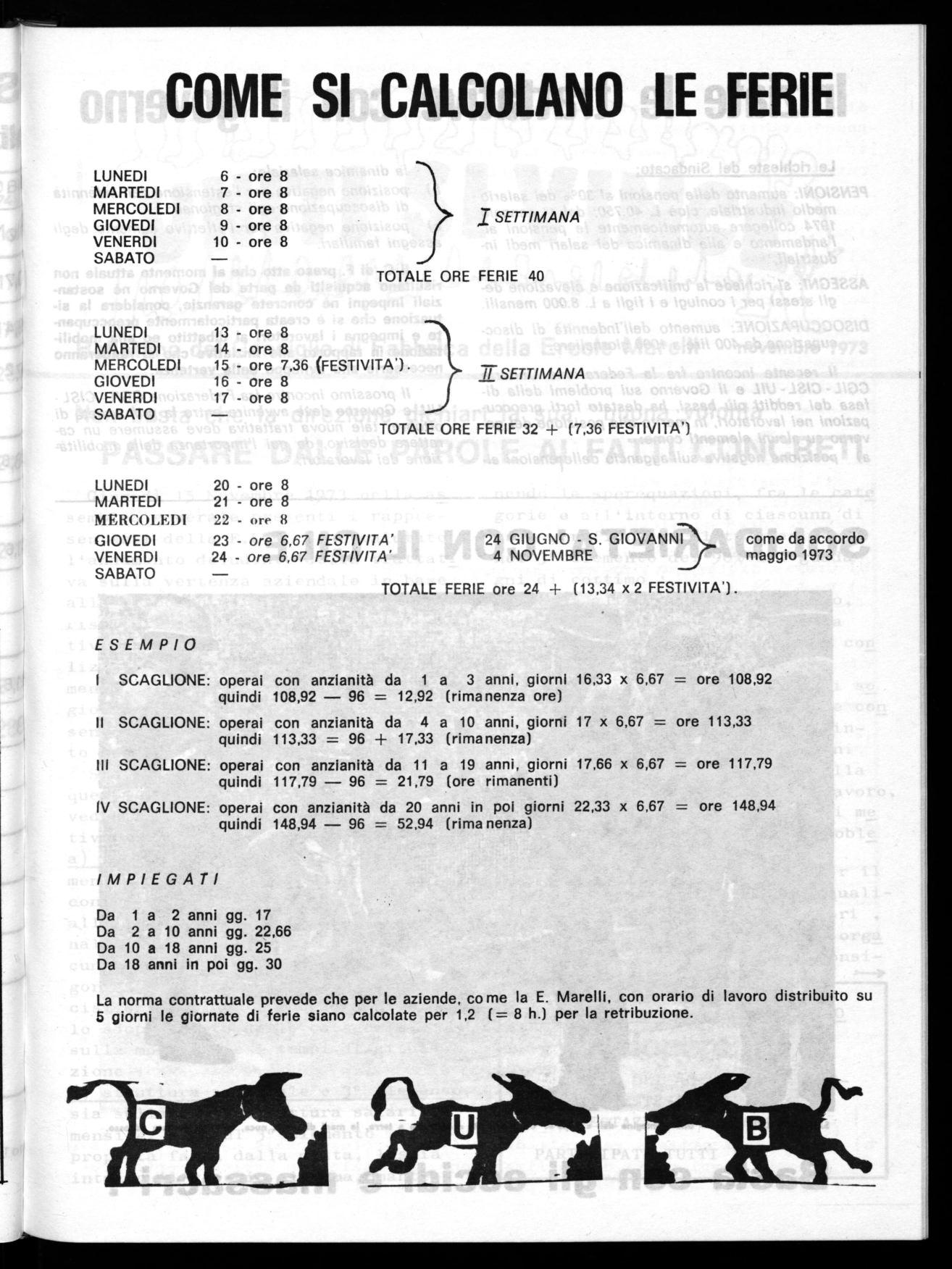 La norma contrattuale prevede che per le aziende, co me la E. Marelli, con orario di lavoro distribuito su 5 giorni le giornate di ferie siano calcolate per 1,2 (= 8 h.) per la retribuzione.