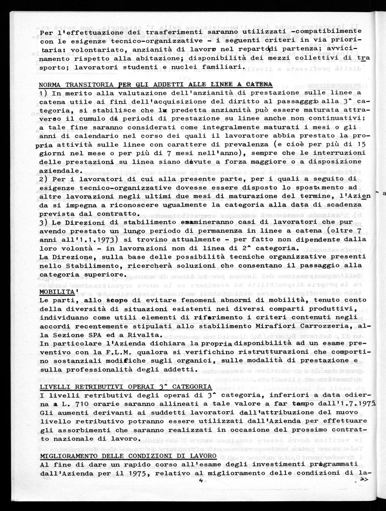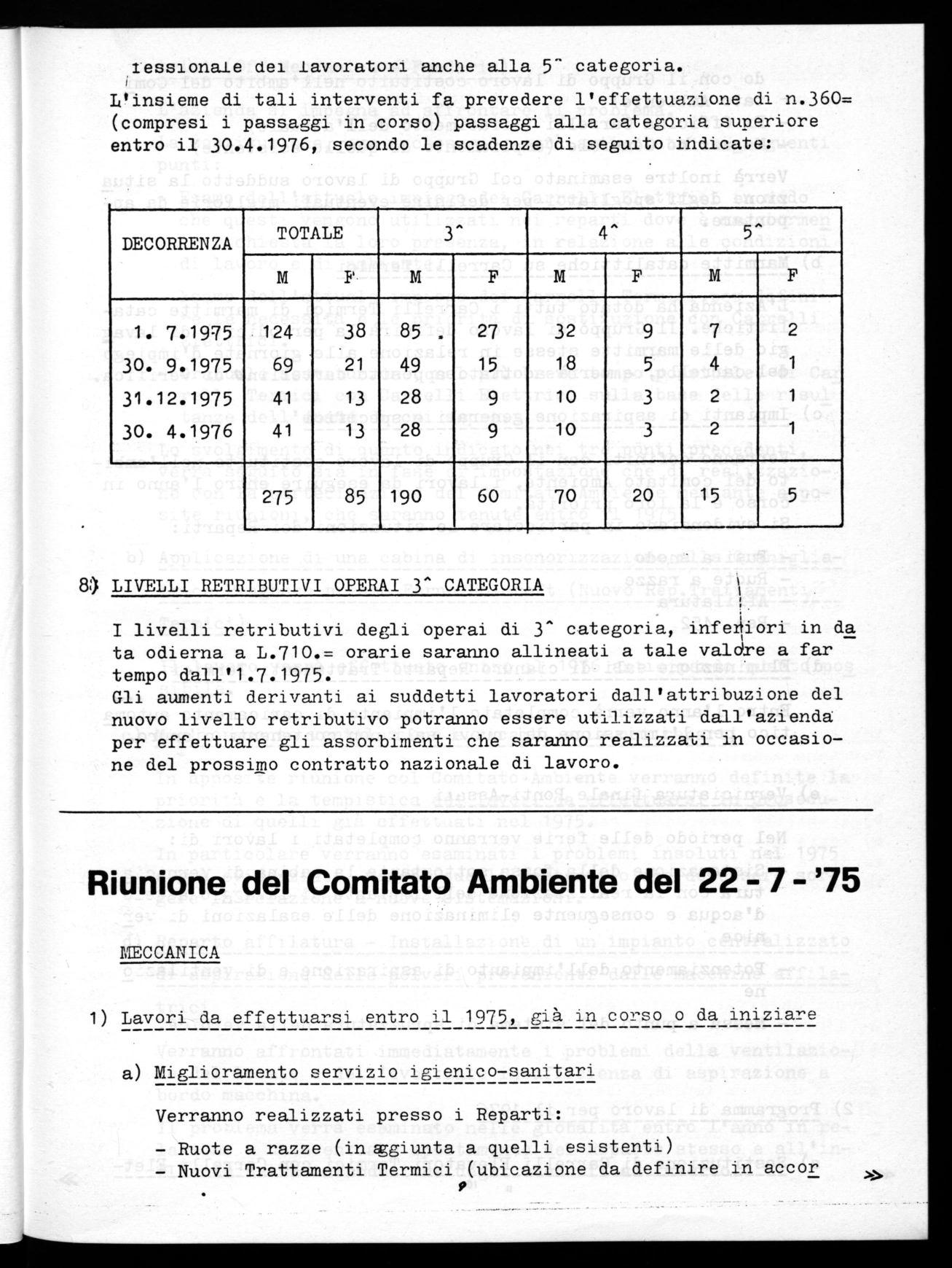 I criteri da salvaguardare per i passaggi di livello saranno i seguenti: passaggi già concprdati per luglio '75 rispetto ai 52 mesi previsti dal C.C.N.L. 1973