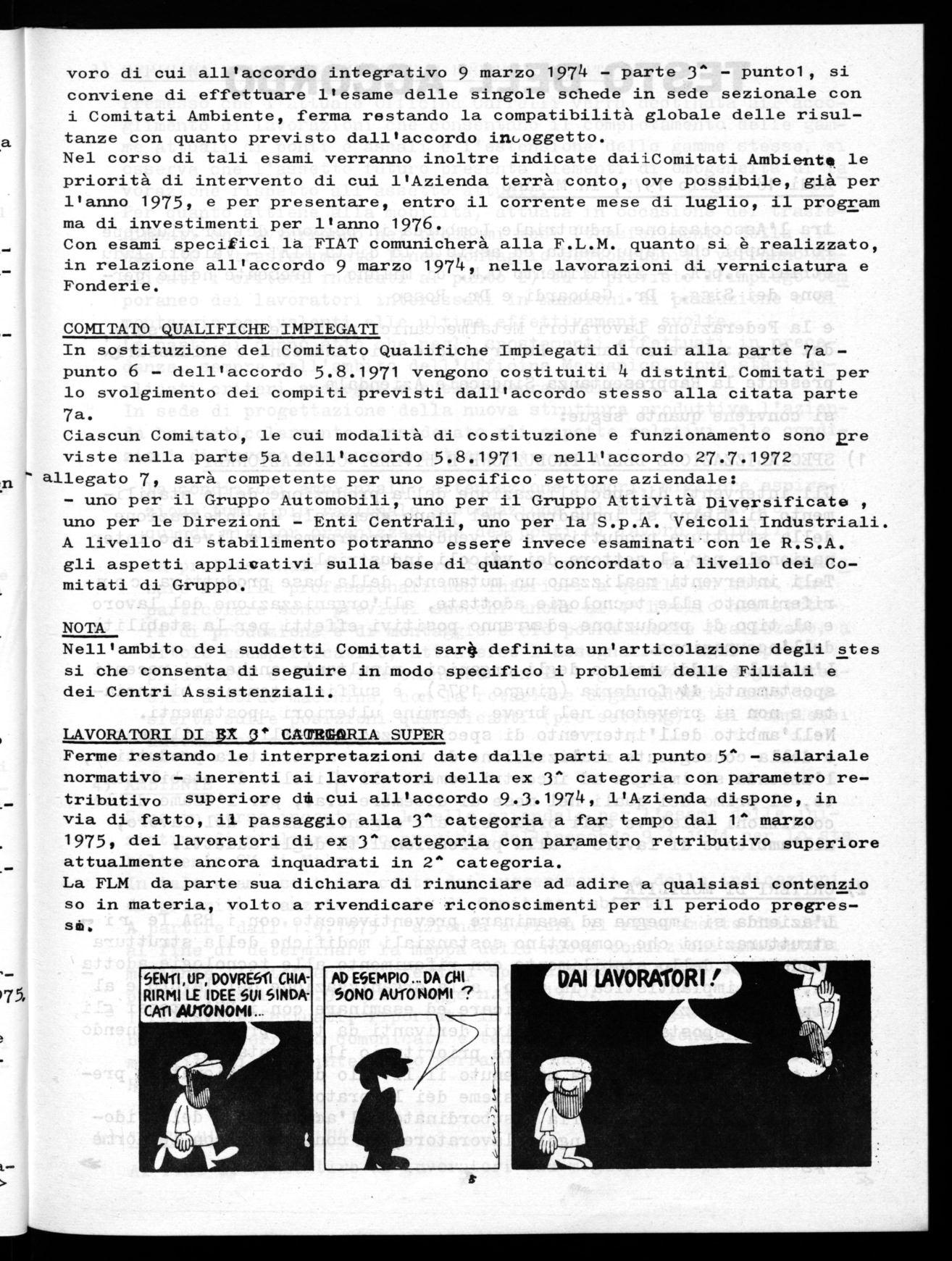 Con esami specifici la FIAT comunicherà alla F.L.M. quanto si è realizzato, in relazione all'accordo 9 marzo 1974, nelle lavorazioni di verniciatura e Fonderie.