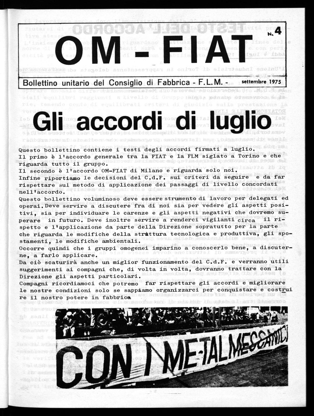 Bollettino unitario del Consiglio di Fabbrica - F.L.M. - settembre 1975