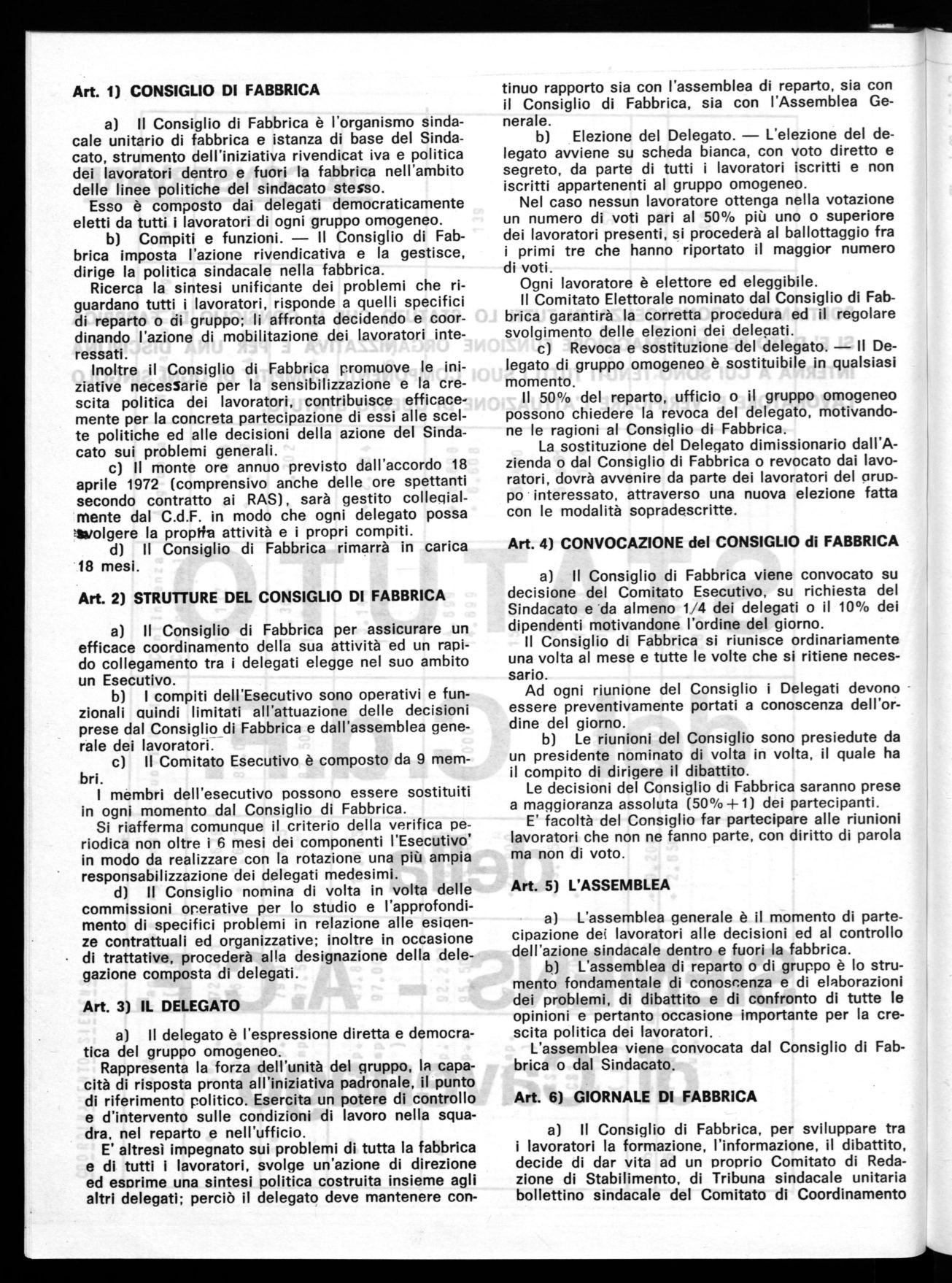 Art. 1) CONSIGLIO DI FABBRICA