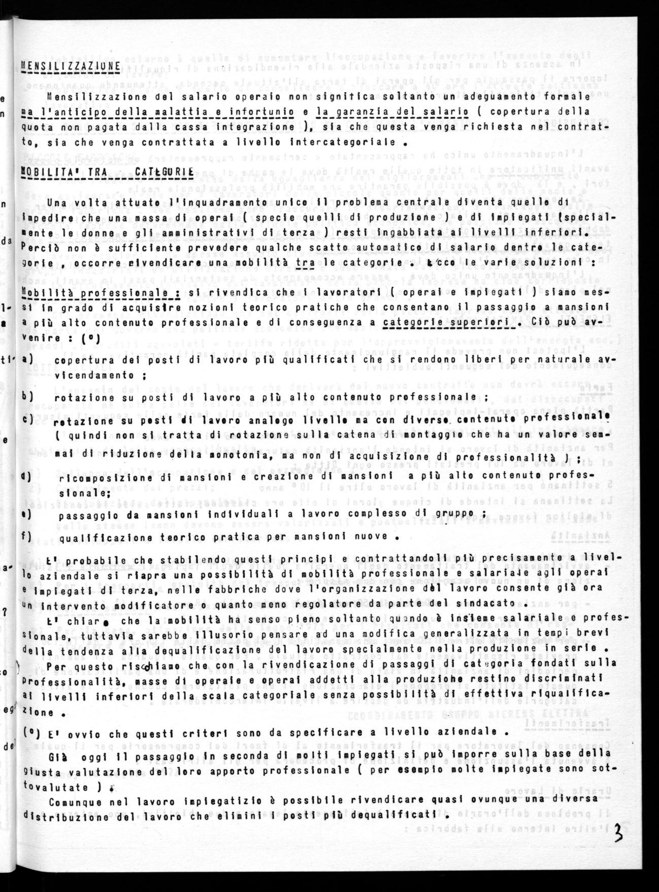Mobiliti professionale : si rivendica che i lavoratori ( operai e impiegati ) siamo mesl.' si in grado di acquisire nozioni teorico pratiche che consentano il passaggio a mansioni a a più alto contenuto professionale e di conseguenza a categorie suaeriori . Ciò può avvenire : (o)
