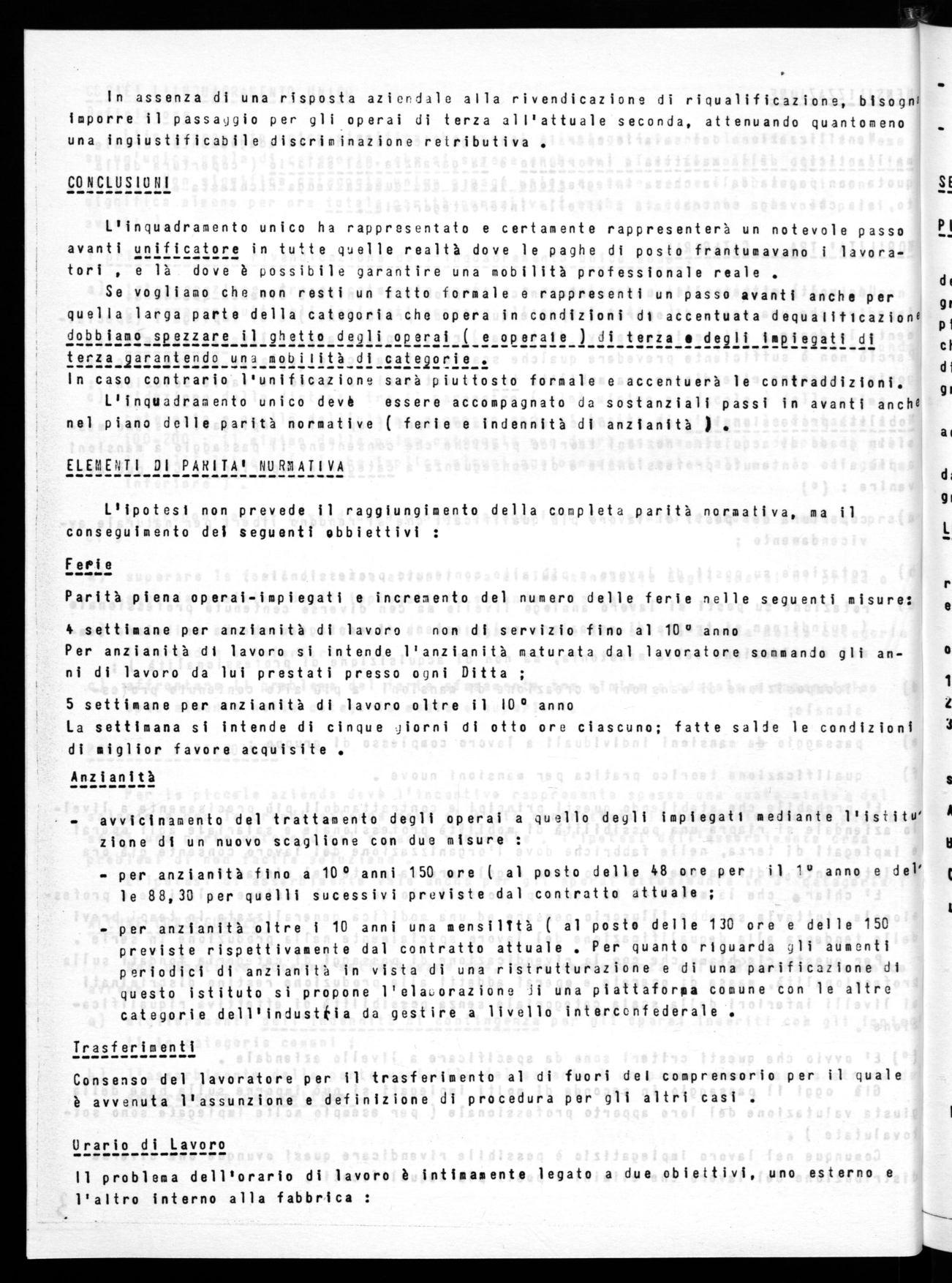 n Una volta attuato l'inquadramento unico il problema centrale diventa quelle di impedire che una massa di operai ( specie quelli di produzione ) e di impiegati tspecialda Perciò non è sufficiente prevedere qualche scatto automatico di salario dentro le catemente le donne e gli amministrativi di terza ) resti ingabbiata ai livelli inferiori.