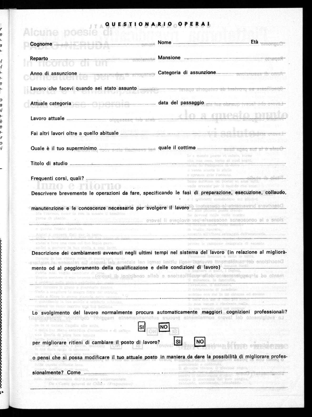 Descrizione dei cambiamenti avvenuti negli ultimi tempi nel sistema del lavoro (in relazione al miglioràmento od al peggioramento della qualificazione e delle condizioni di lavoro)