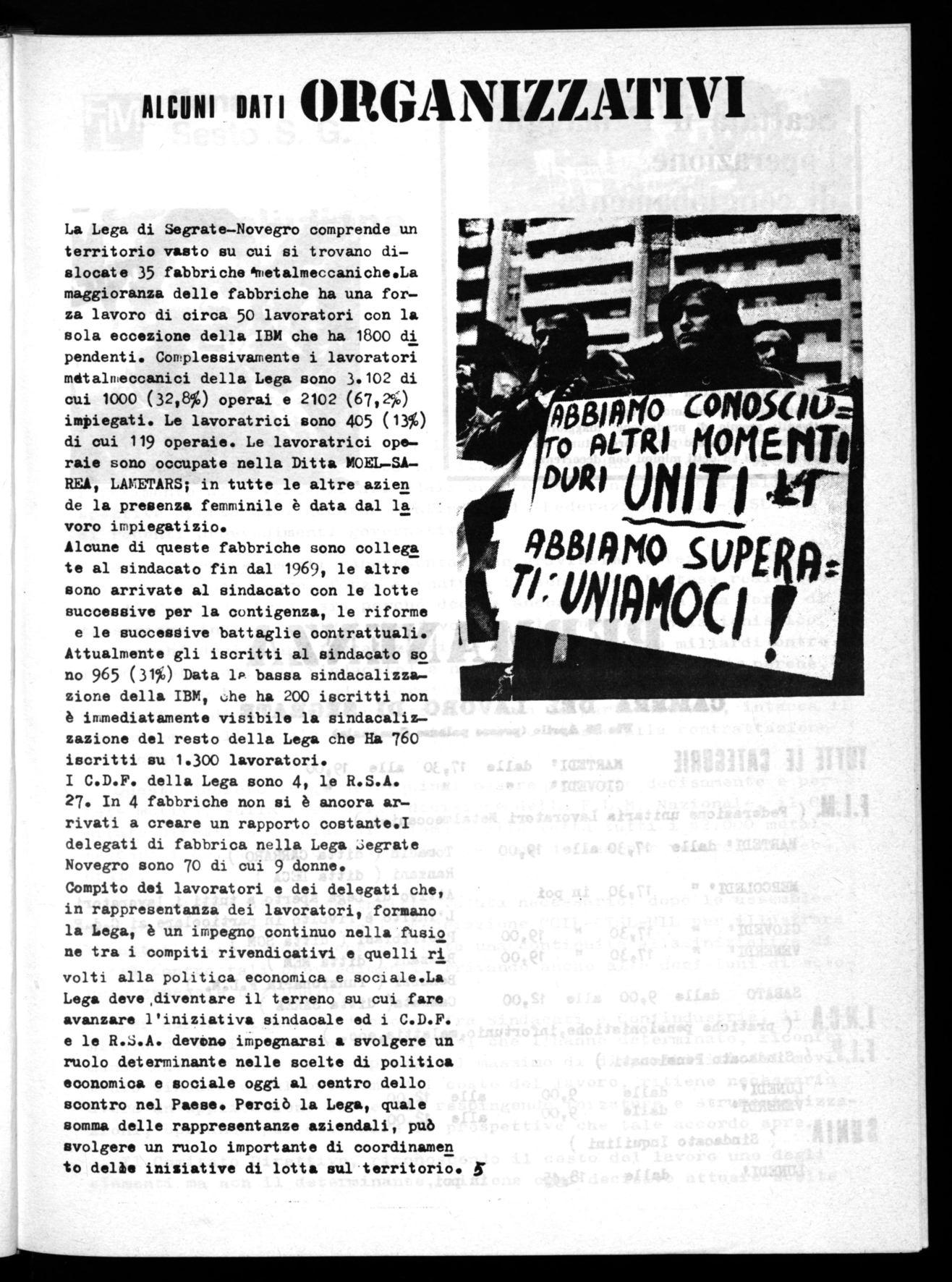 sono stati il terreno su cui è nata la Le ga organizzata. Al punto di crescita in cui è la Lega, l'esigenza di avere un gior nale esprime la volontà politica di passare ad un intervento più immediatp e deciso che coinvolga sempre più tutti i lavoratori e non solamente quelli che per vari motivi hanno avuto più stretti collegamenti con il Sindacato di Zona. Questo significa portare nella fabbrica l'esperienza ed il contribu to di altre fabbriche per stimolare e dare gli strumenti validi per affrontare più de cisanente i problemi che emergono nella fabbrica e nel territorio.