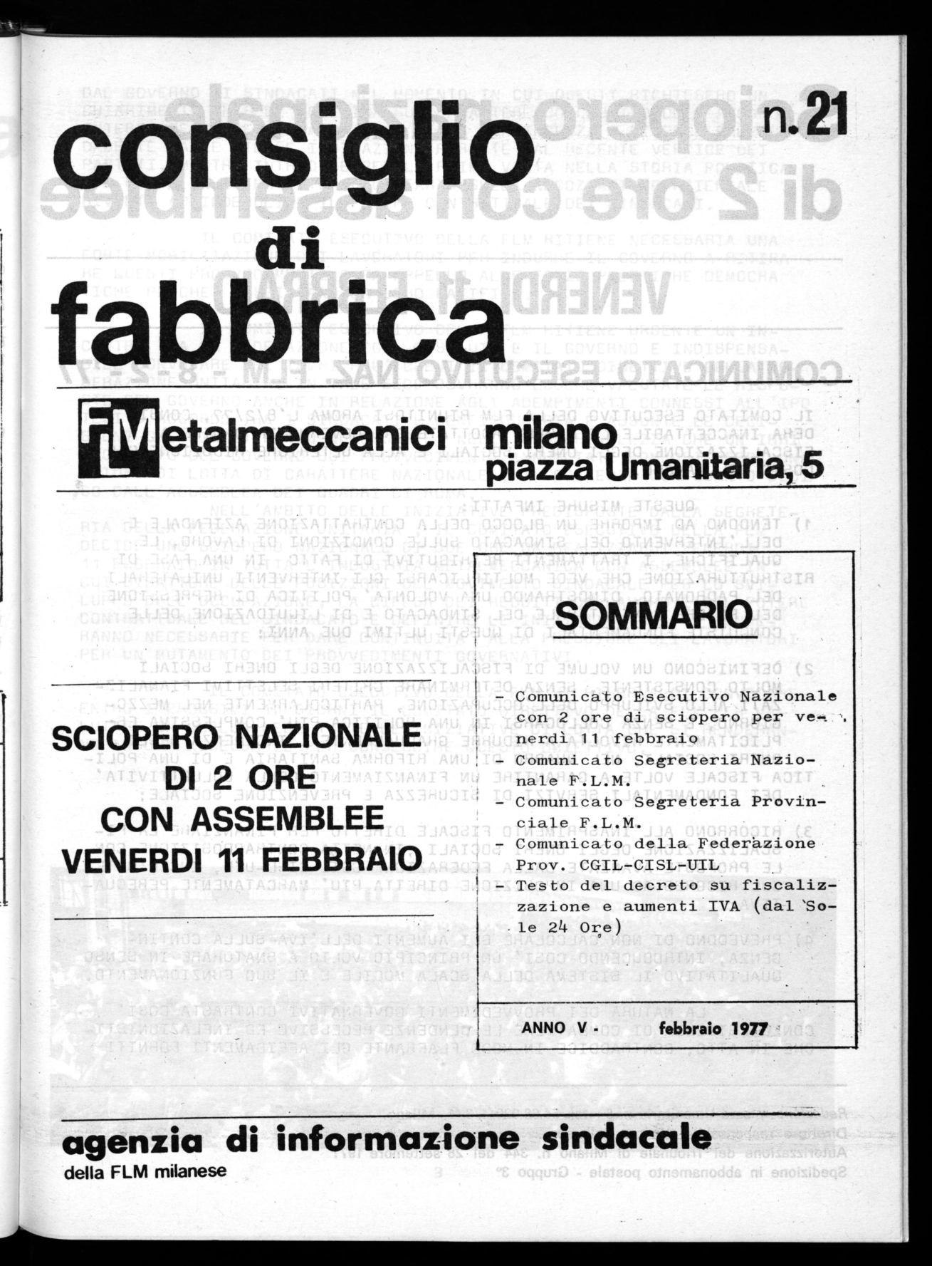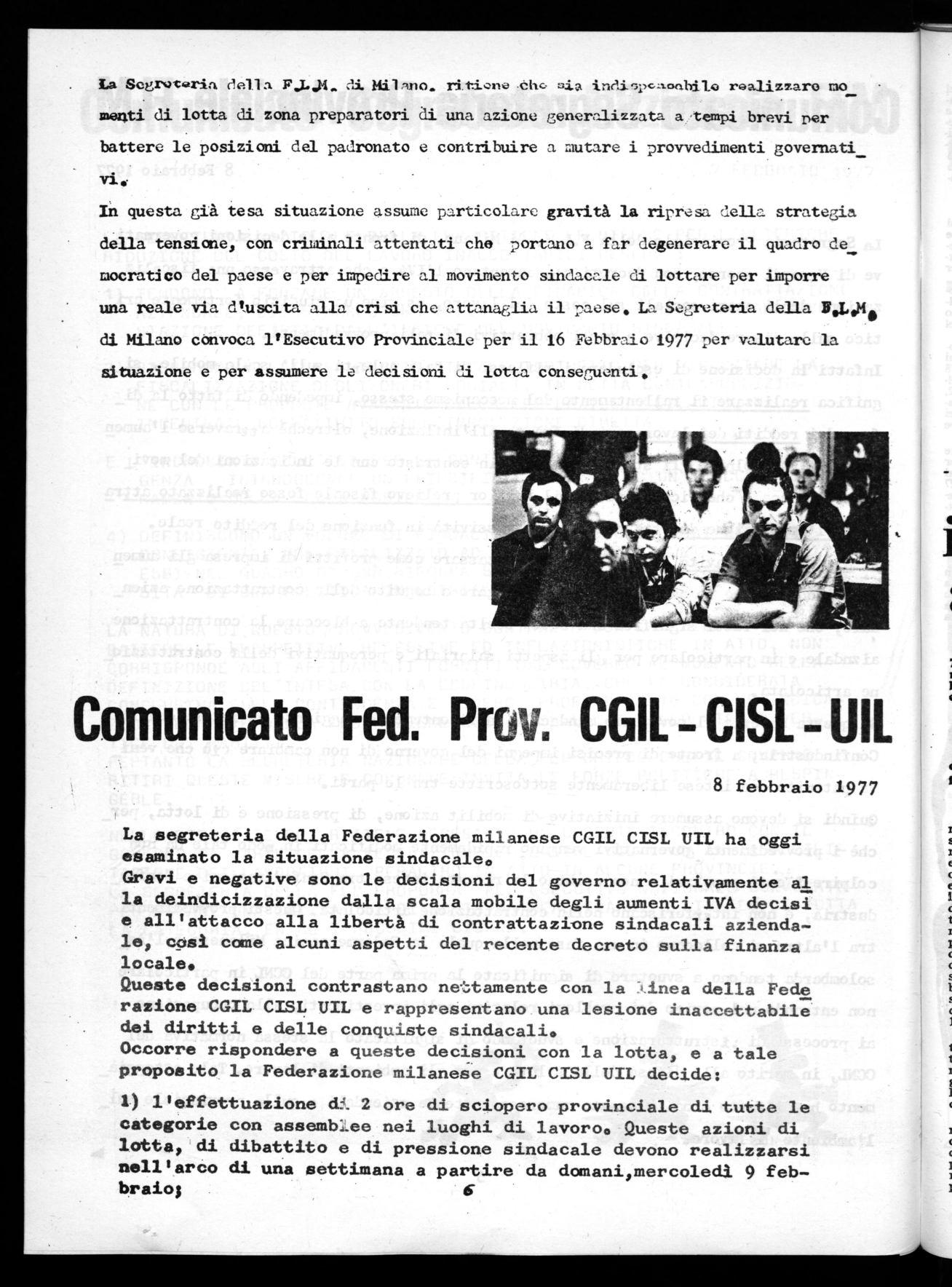 COMUNICATO ESECUTIVO NAZ. FLM - 8 - 2 - '77