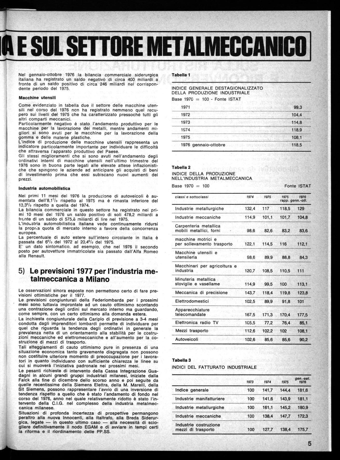 5) Le previsioni 1977 per l'industria metalmeccanica a Milano