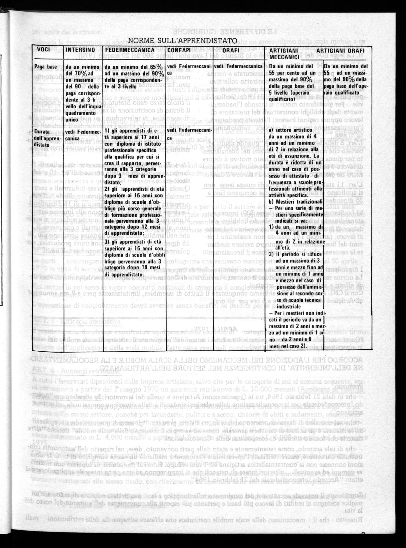 A decorrere dal r maggio 1975 viene esteso a tutti i dipendenti delle aziende artigiane considerate tali in base alla legge 860 del 25 luglio e successive modificazioni il meccanismo della scala mobile (secondo quanto convenuto al protocollo allegato.)