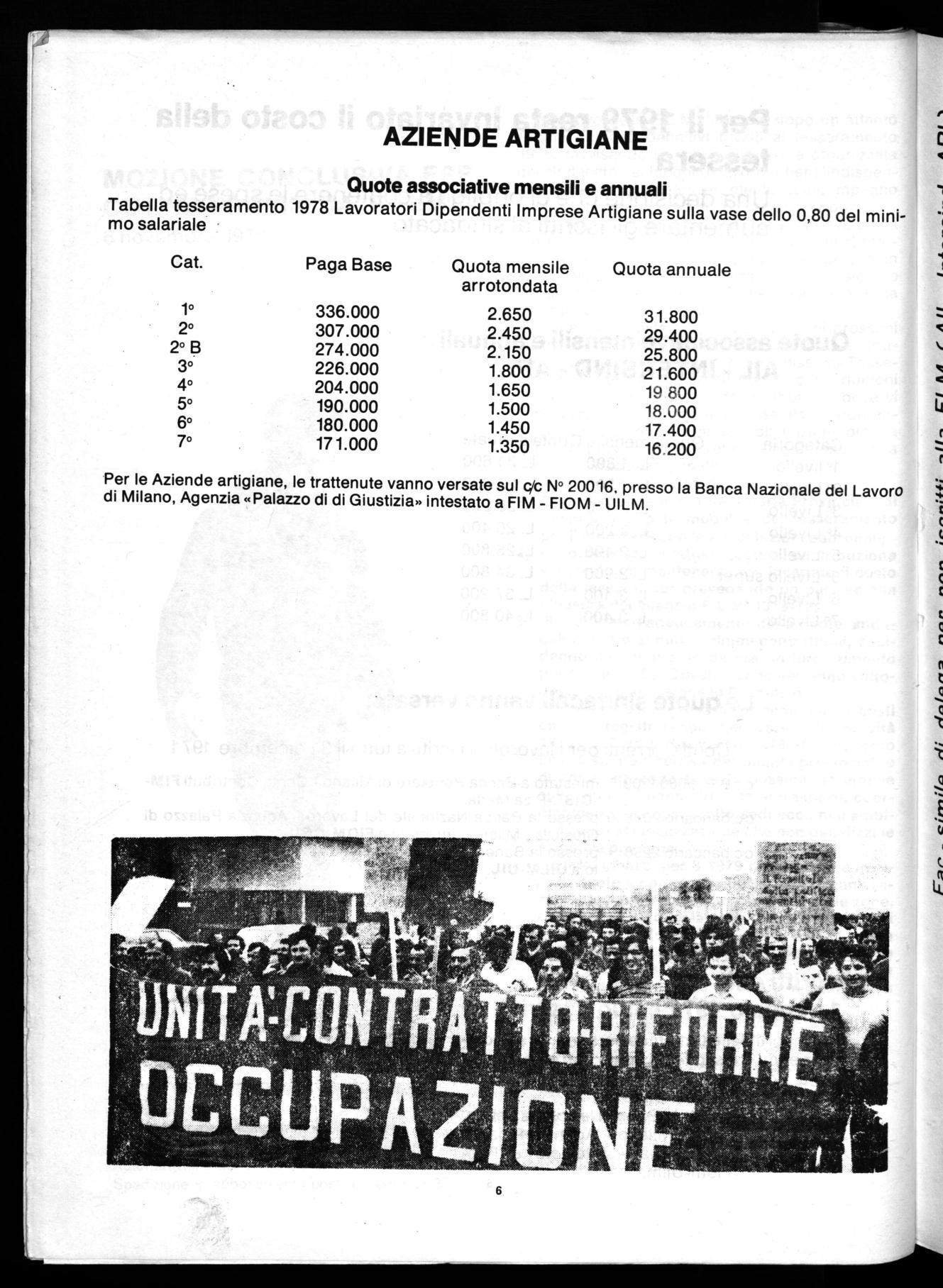Quote associative mensili e annuali Tabella tesseramento 1978 Lavoratori Dipendenti Imprese Artigiane sulla vase dello 0,80 del mini- mo salariale